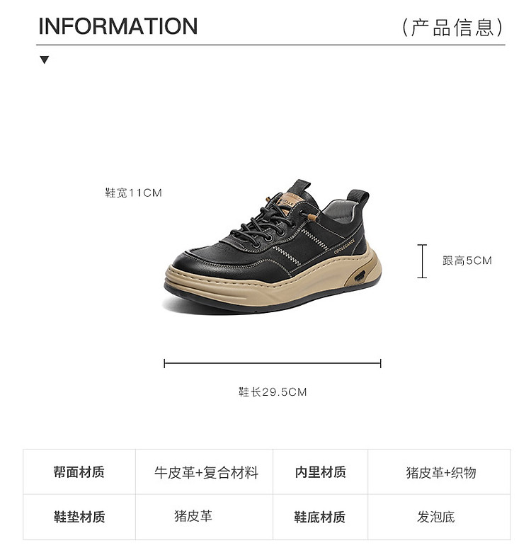 商品名称:【厚底显高】百丽男鞋板鞋男士春季商务休闲鞋高级休闲皮鞋男 329050