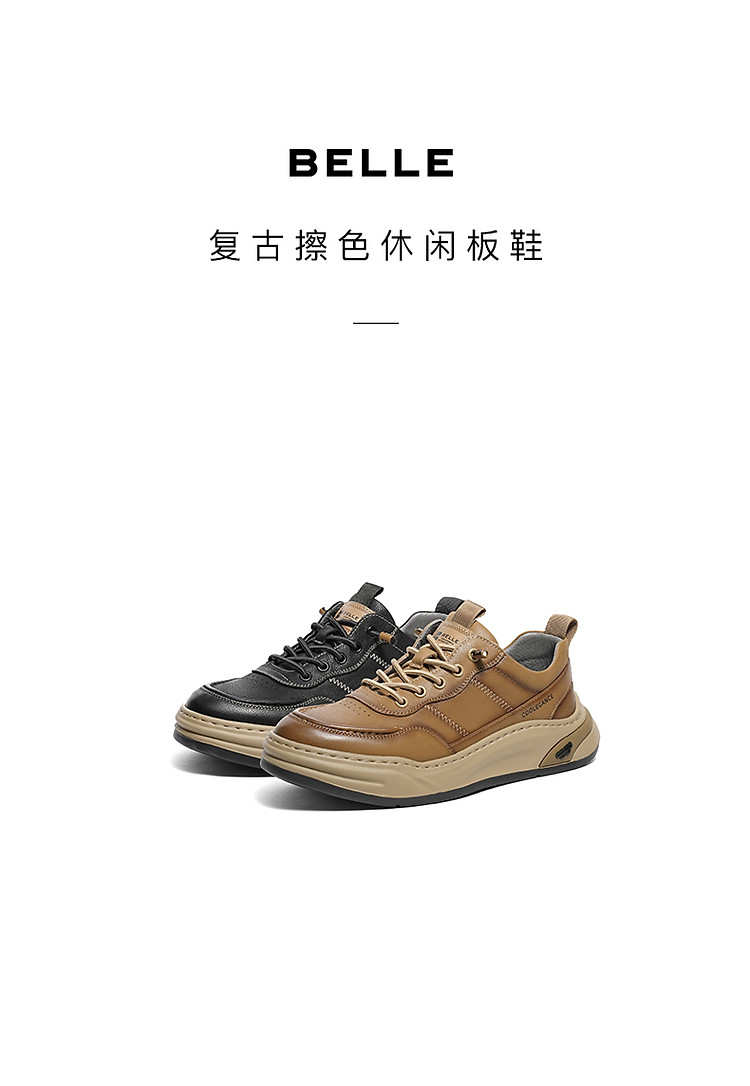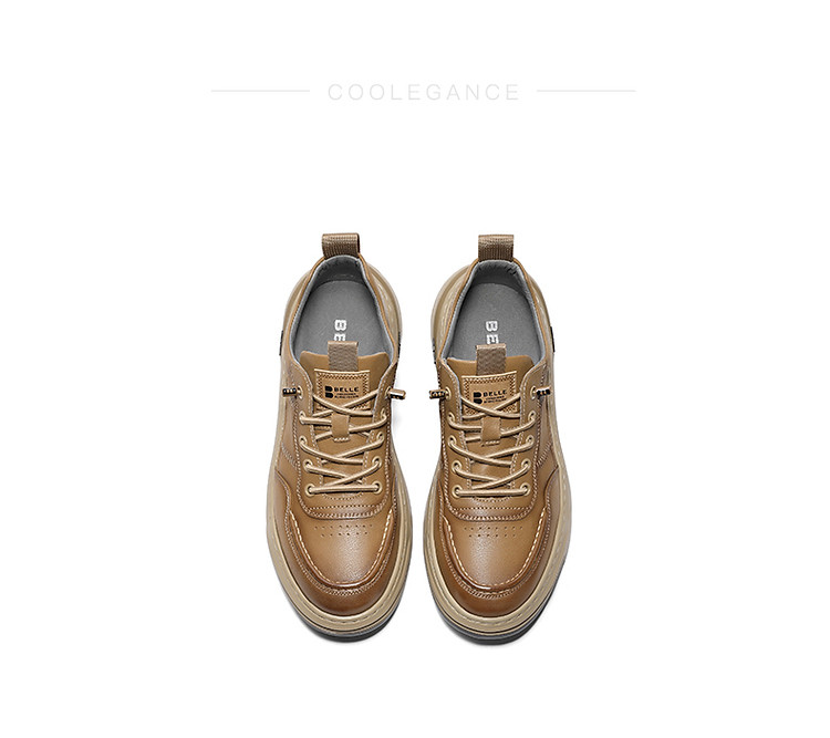 【厚底显高】百丽男鞋板鞋男士春季商务休闲鞋高级休闲皮鞋男 329050