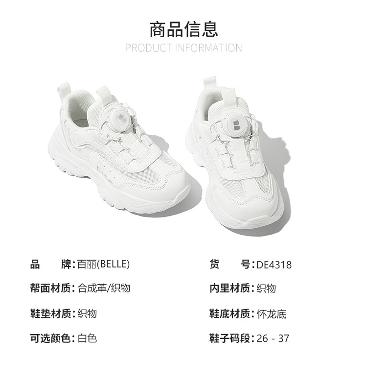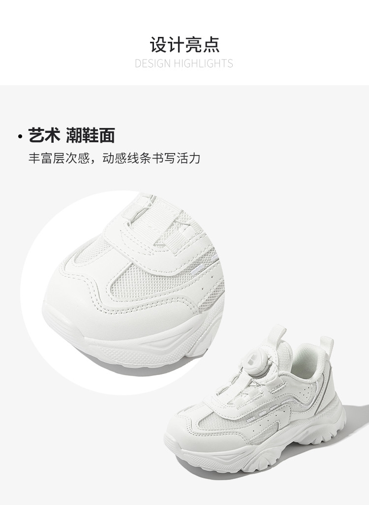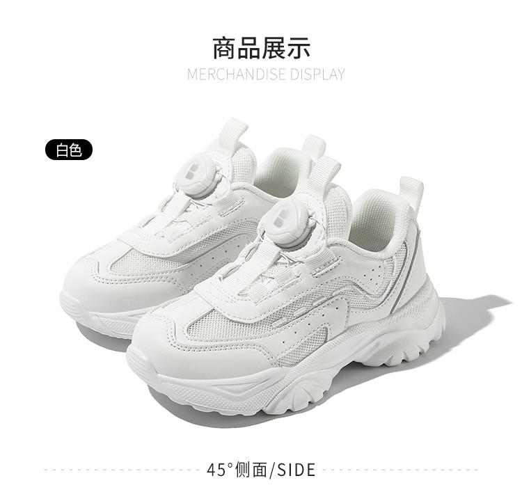 商品名称:【校园小白鞋】开学季春款男女童运动鞋旋转扣网面休闲鞋跑步鞋 046923
