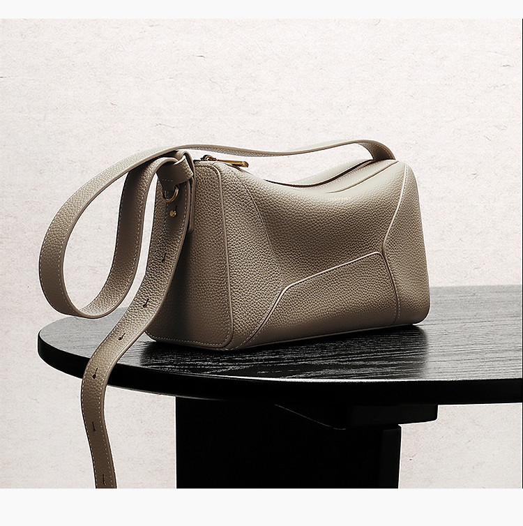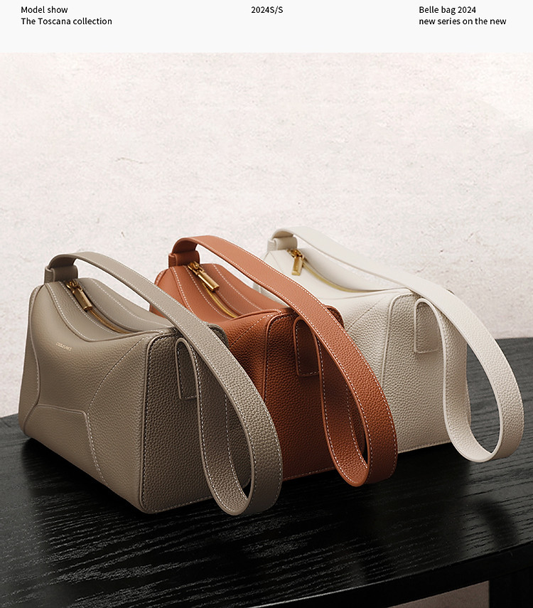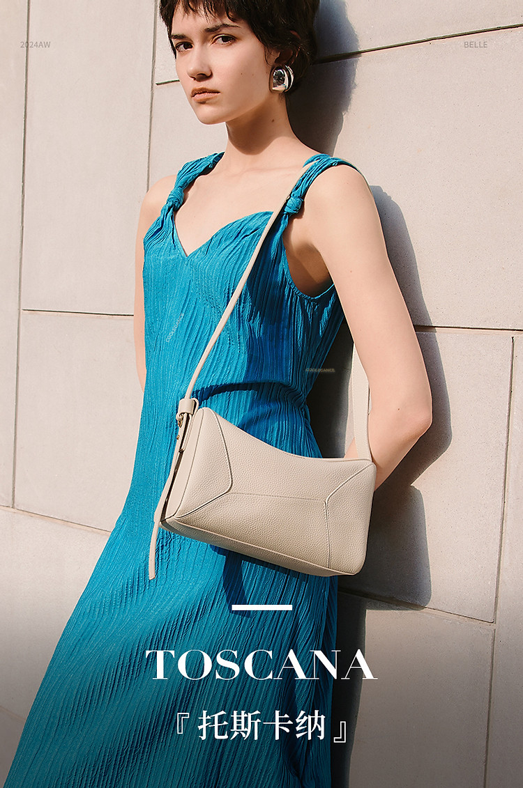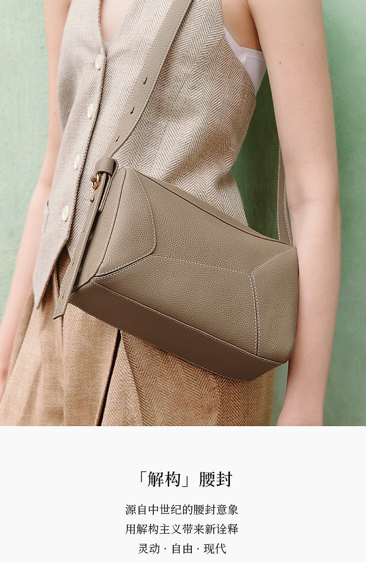 商品名称:【托斯卡纳系列】百丽真皮春秋牛皮简约休闲几何拼接枕头包 658010