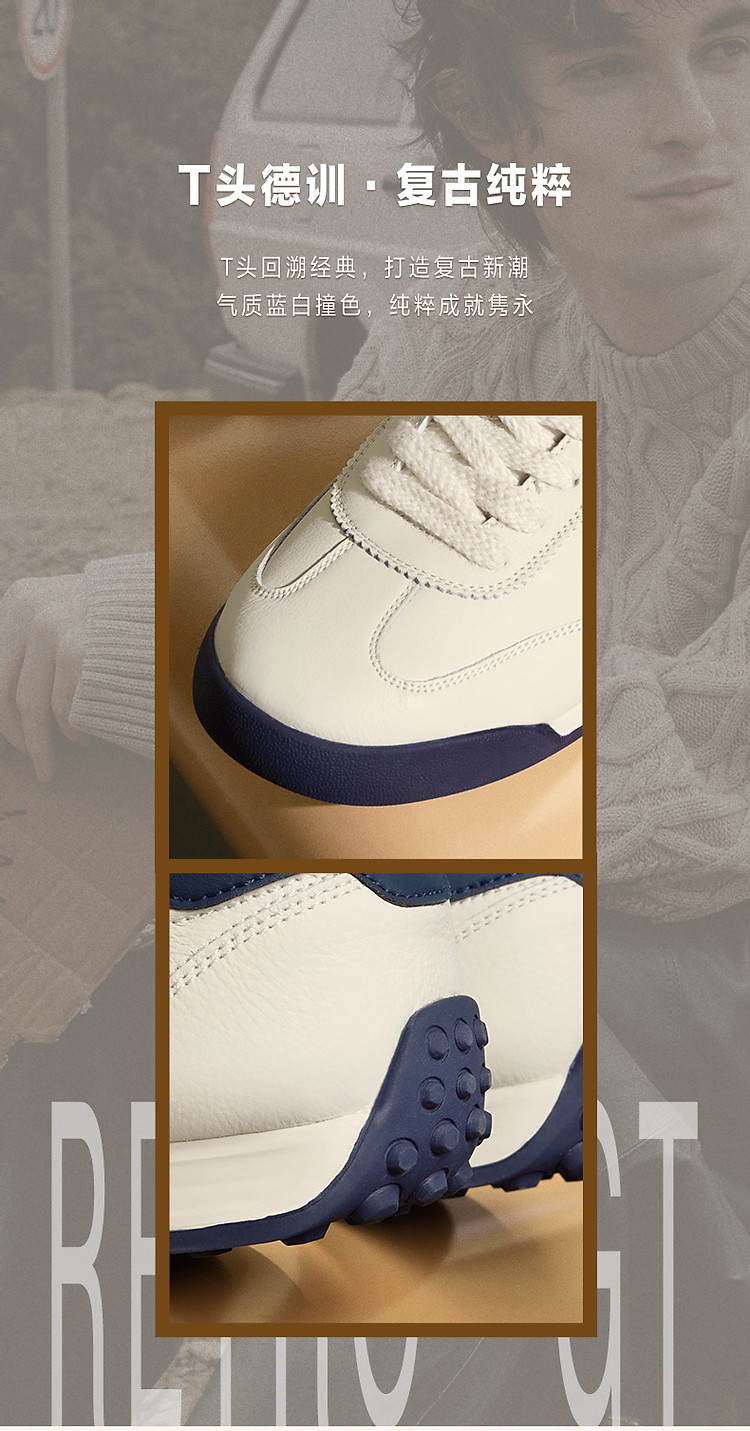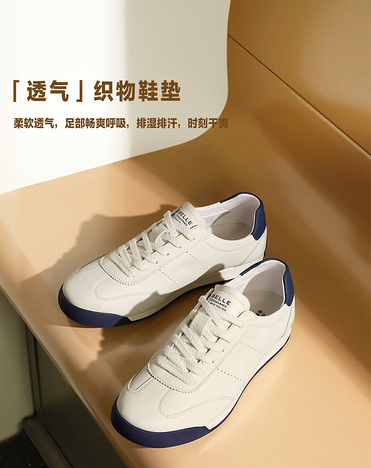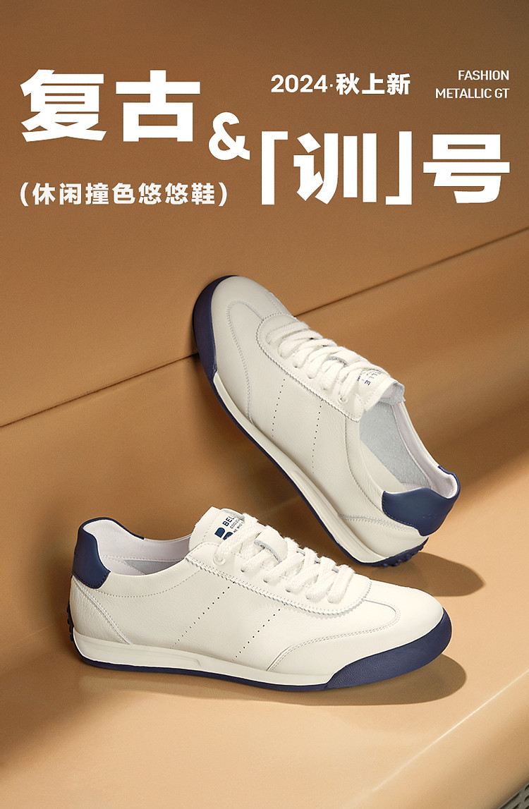 明星同款百丽小轻甘男鞋真皮休闲鞋运动皮鞋德训运动鞋复古鞋 086874