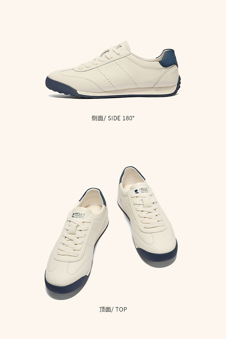 商品名称:明星同款百丽小轻甘男鞋真皮休闲鞋运动皮鞋德训运动鞋复古鞋 086874