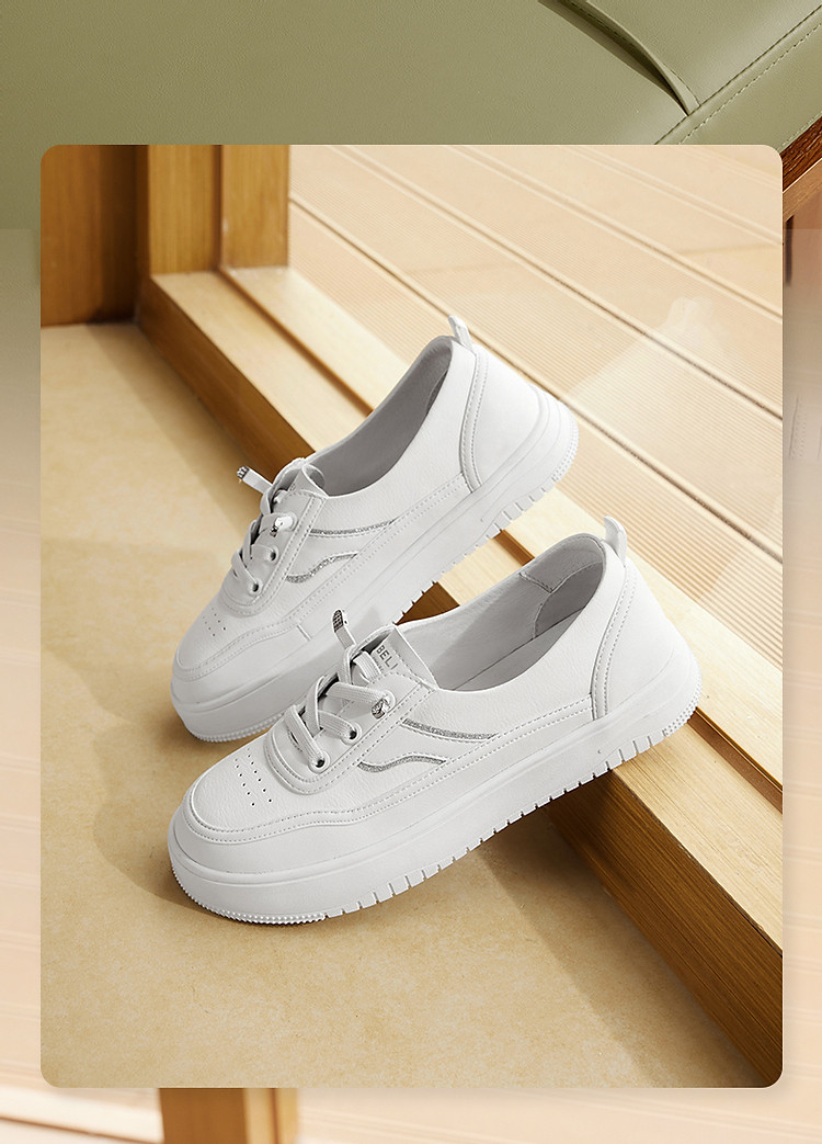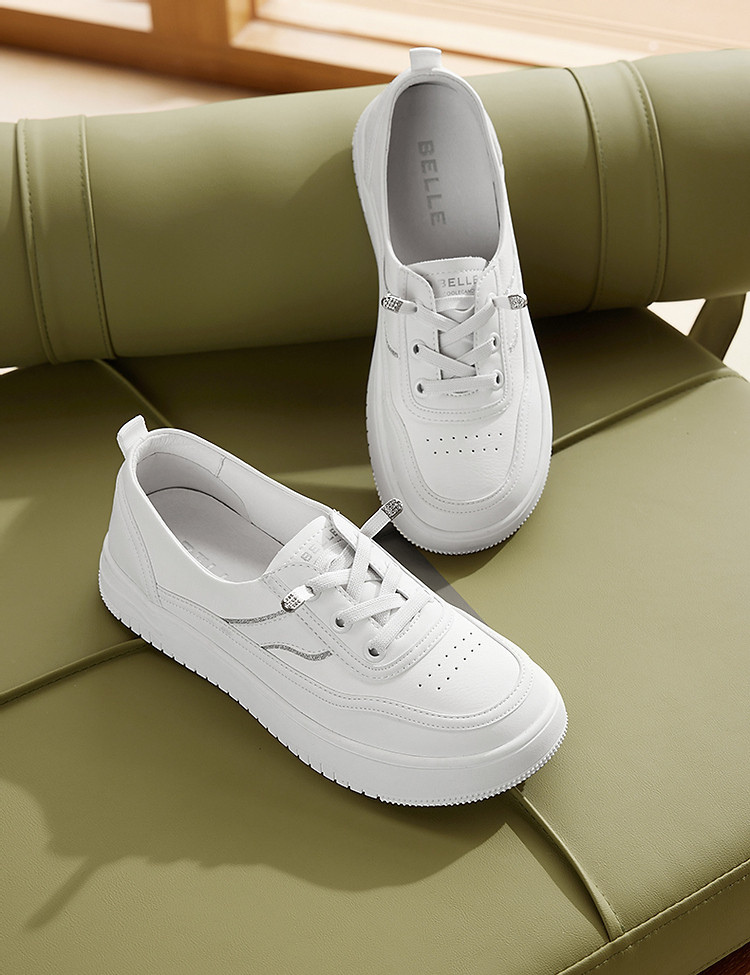 百丽女鞋子妈妈鞋护士鞋通勤板鞋休闲厚底小白鞋女 208026