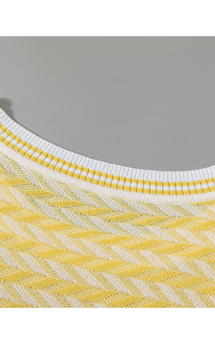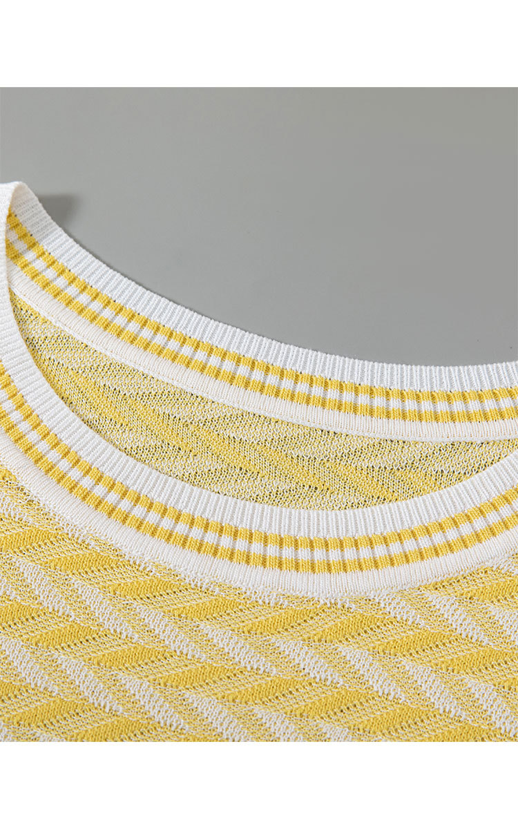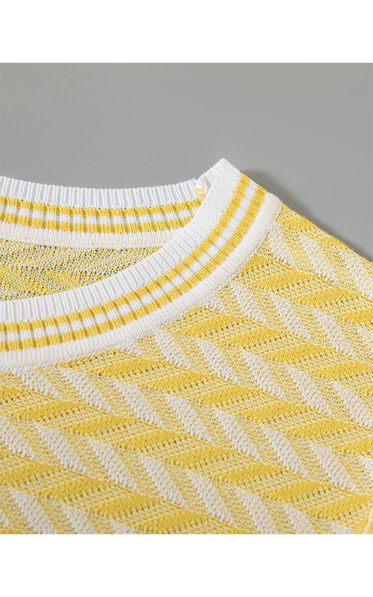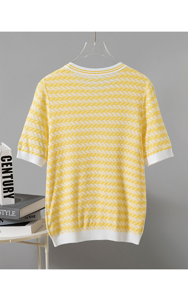商品名称:轻熟风圆领针织衫夏季甜美气质撞色小衫女士短袖上衣 461087