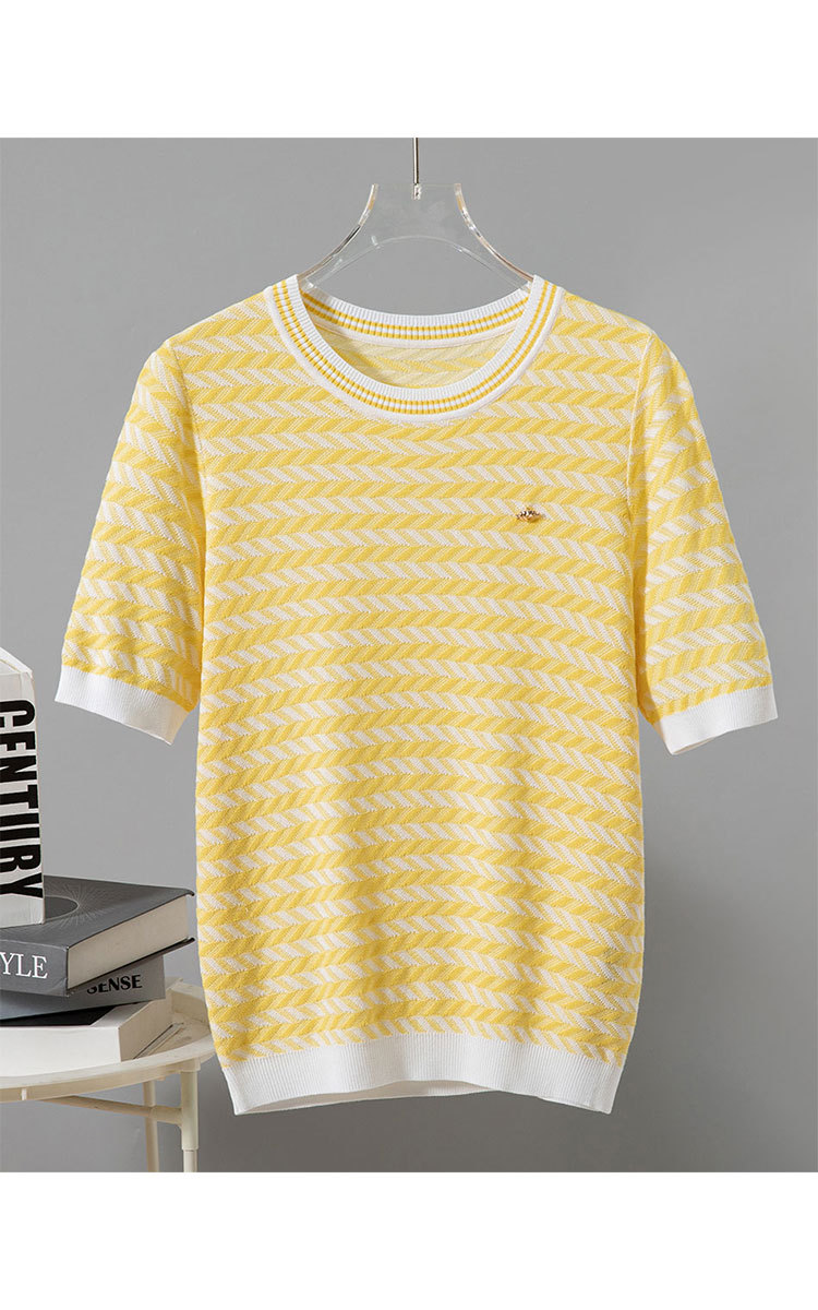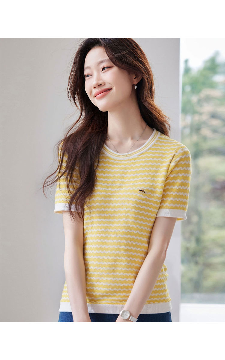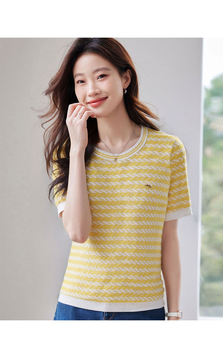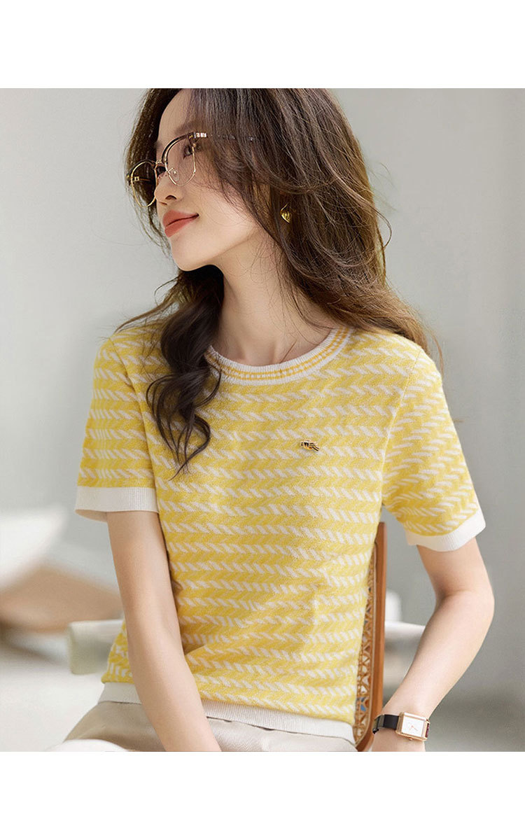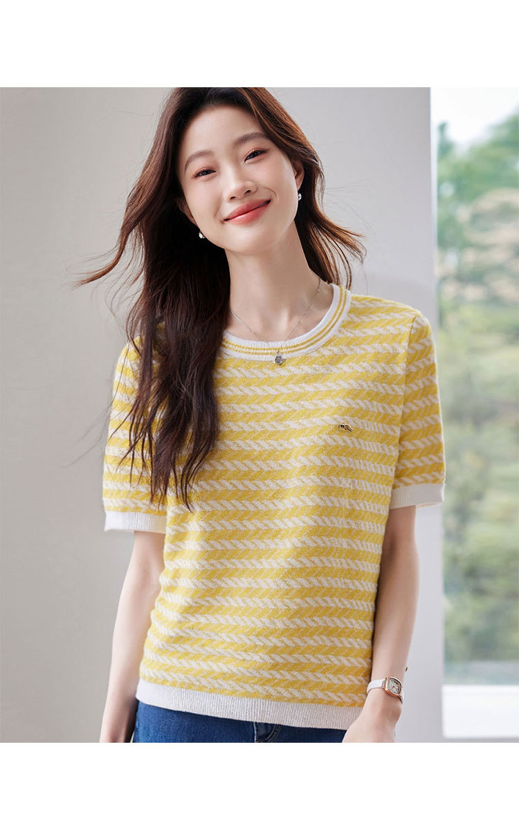 轻熟风圆领针织衫夏季甜美气质撞色小衫女士短袖上衣 461087