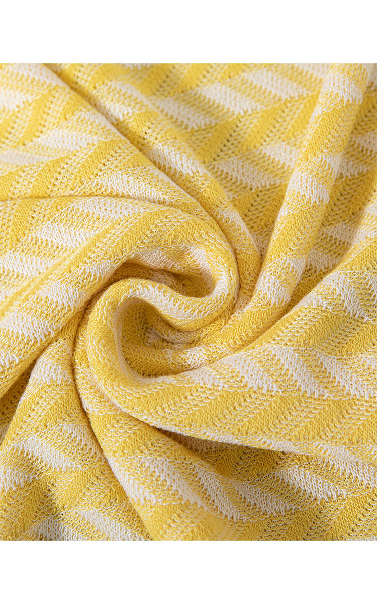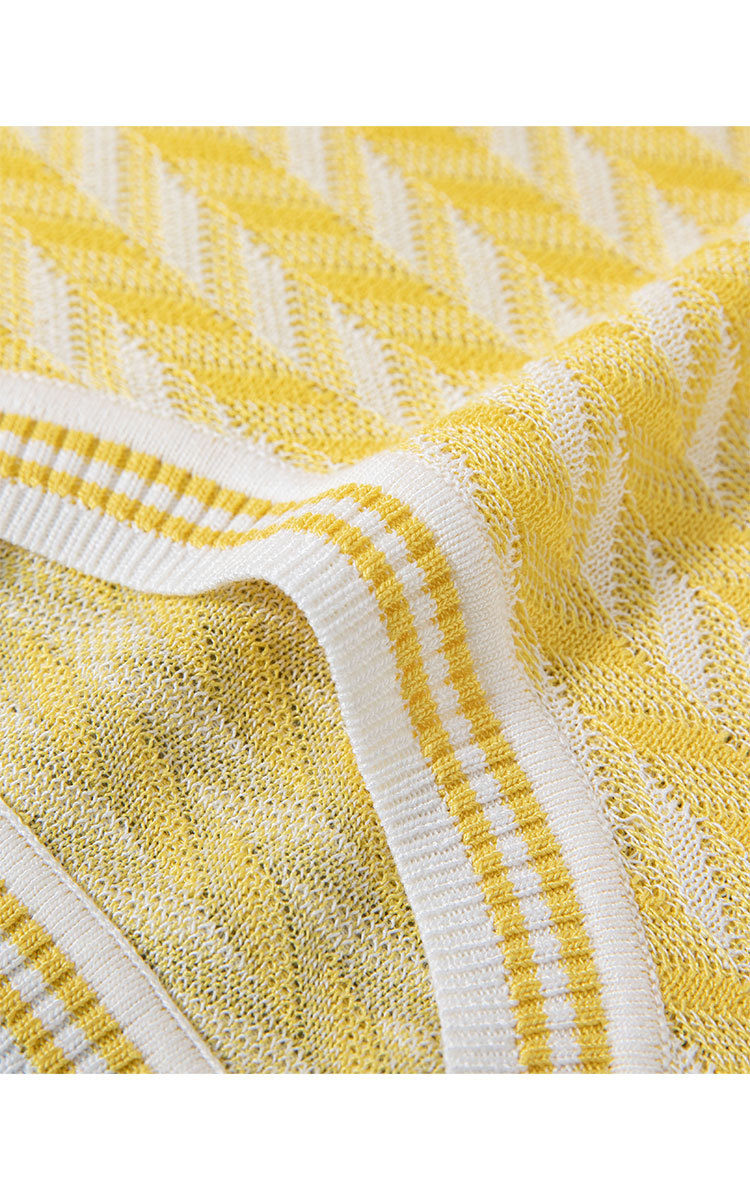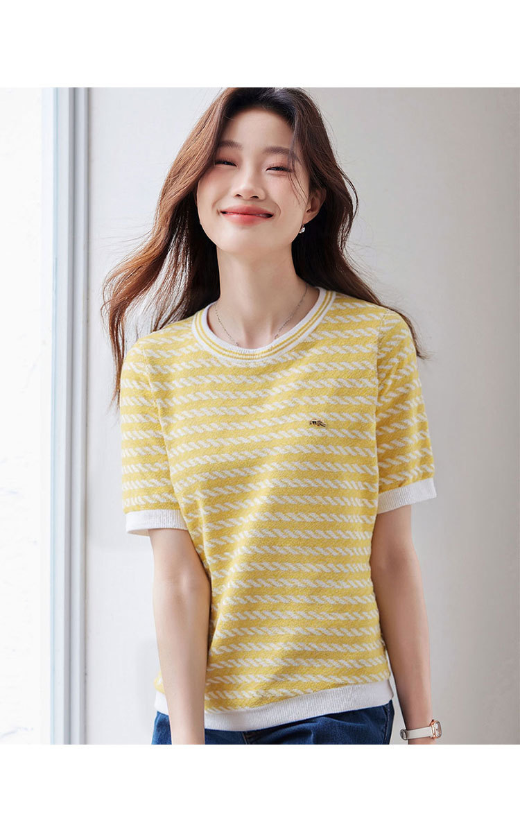 限定系列OCH.春装 小香风亚麻棉条纹上衣短袖针织外套女 004431