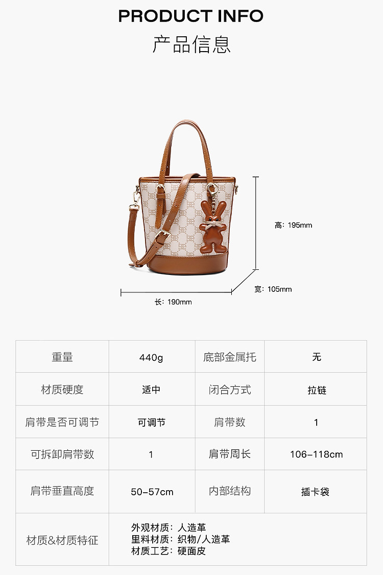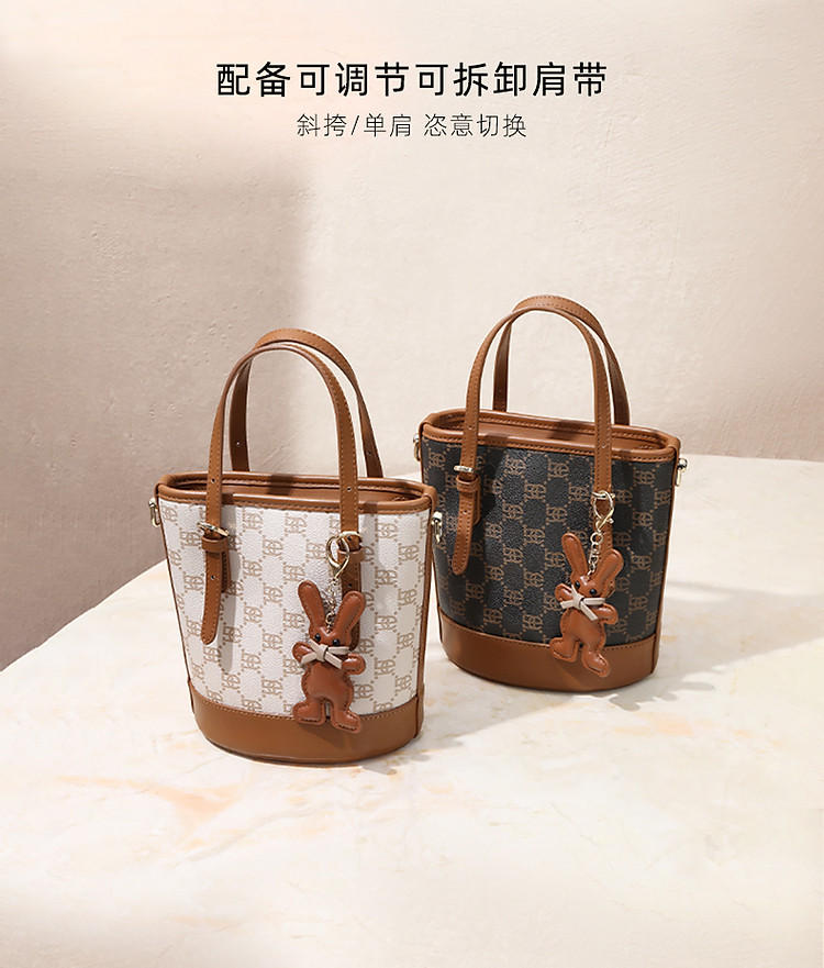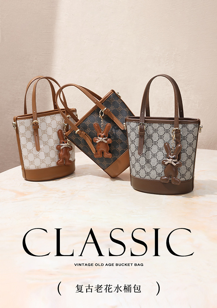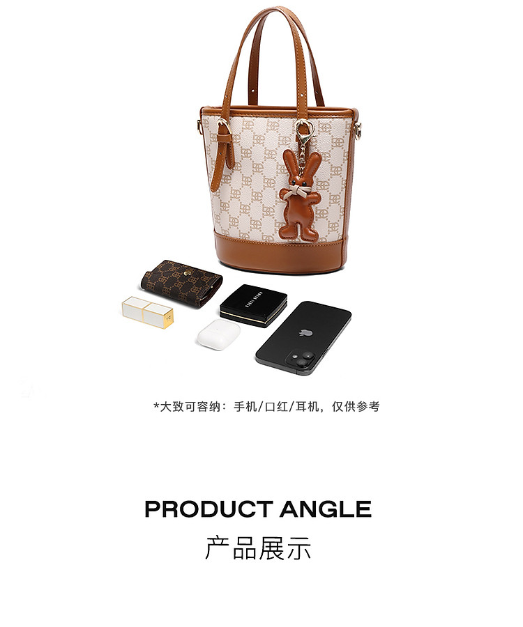 商品名称:【质感拼色】百丽复古老花手提包商场同款小巧通勤单肩水桶包 209562