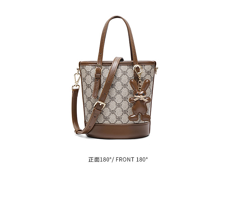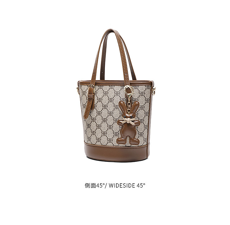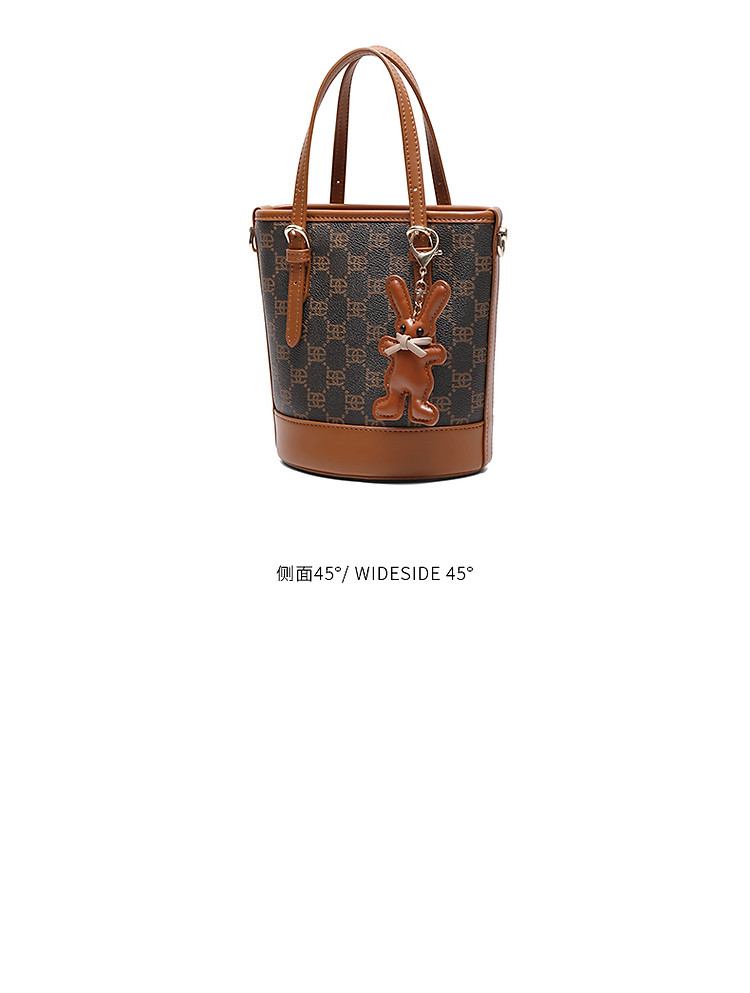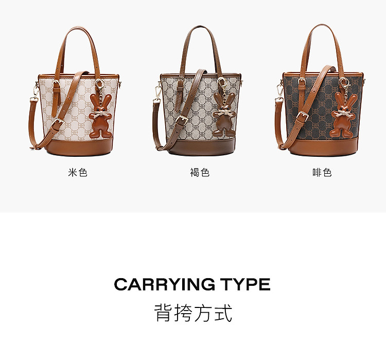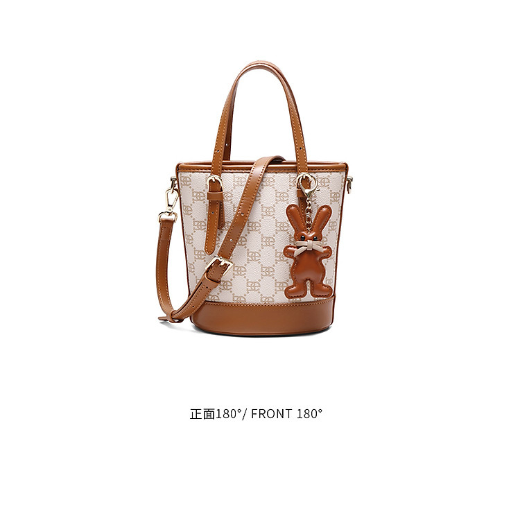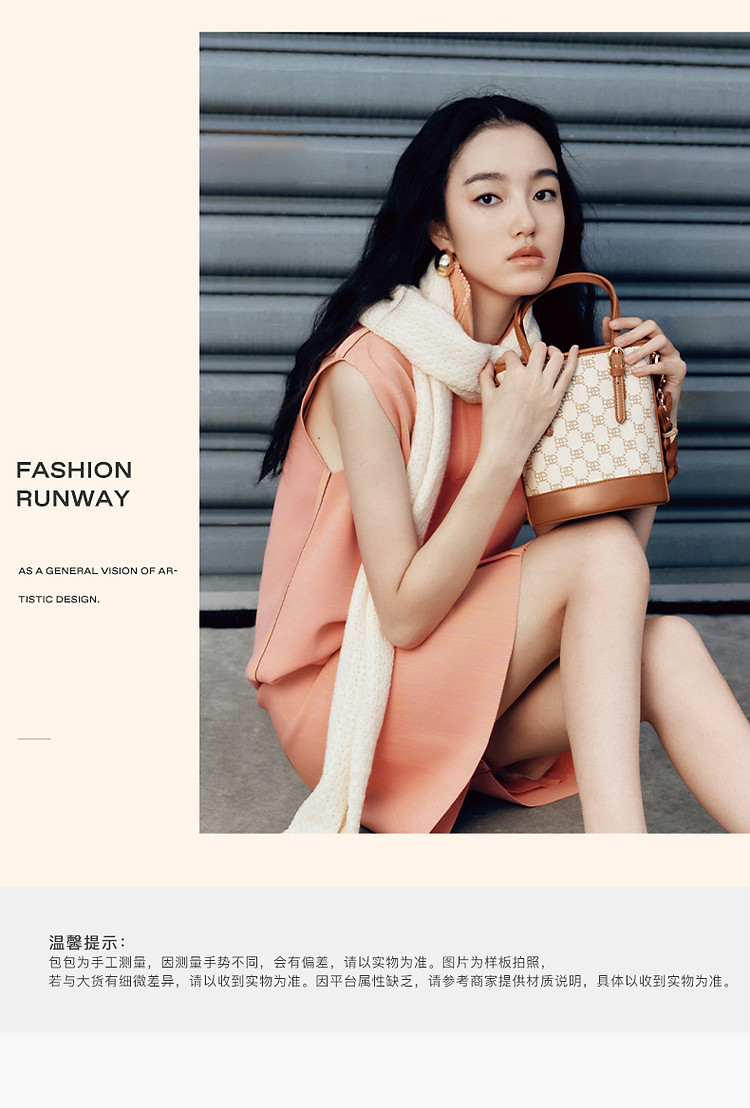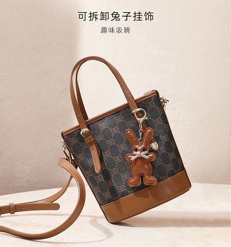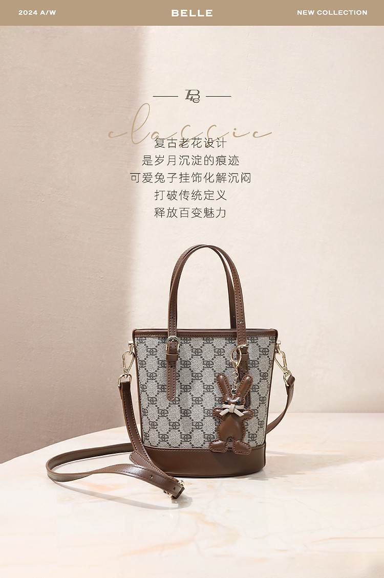 【质感拼色】百丽复古老花手提包商场同款小巧通勤单肩水桶包 209562