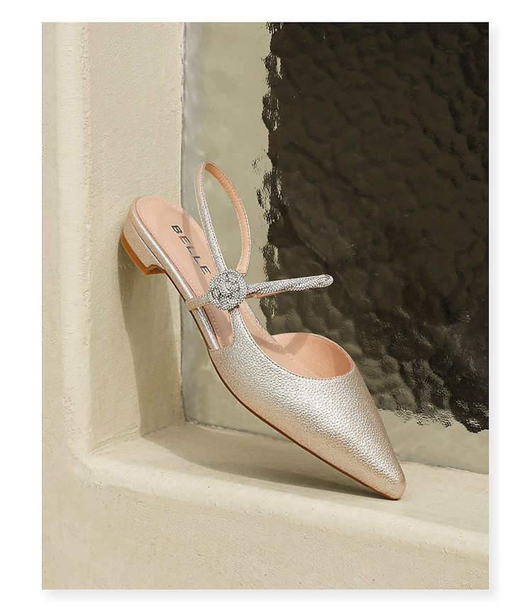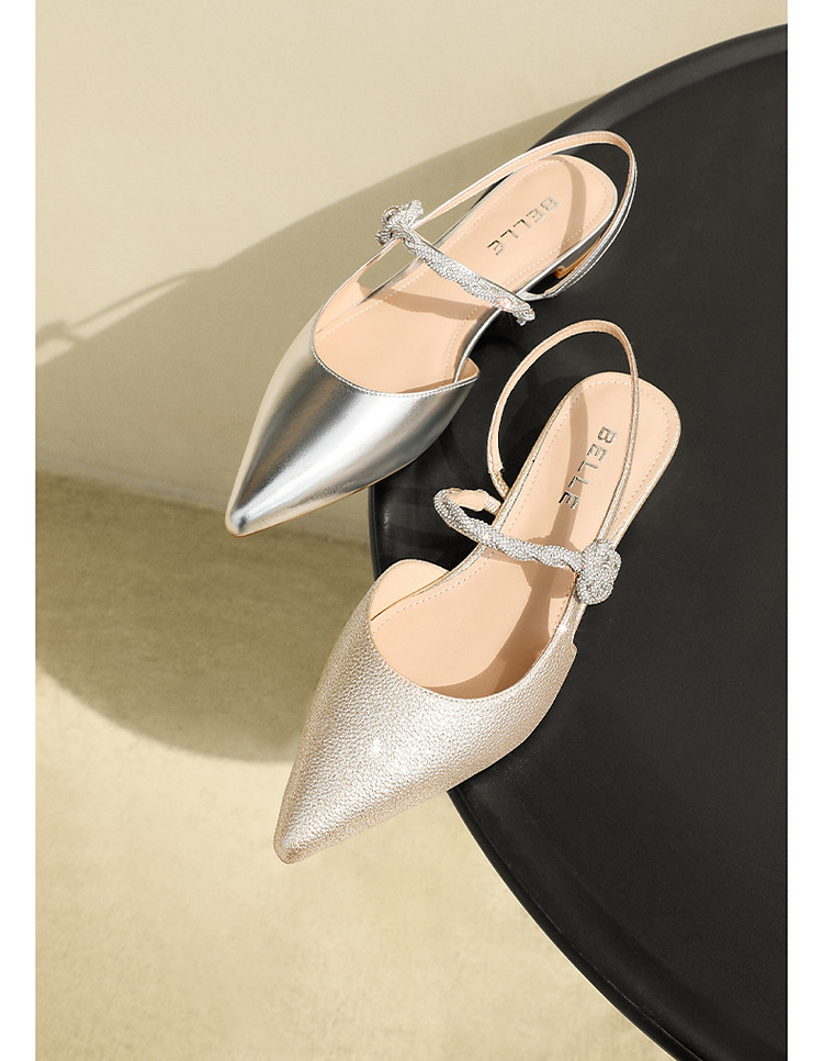 百丽珍妮女孩包头水钻凉鞋女春夏鞋子浅口凉鞋 767322
