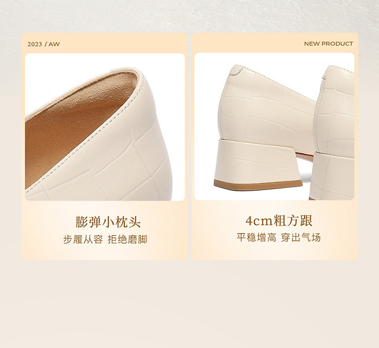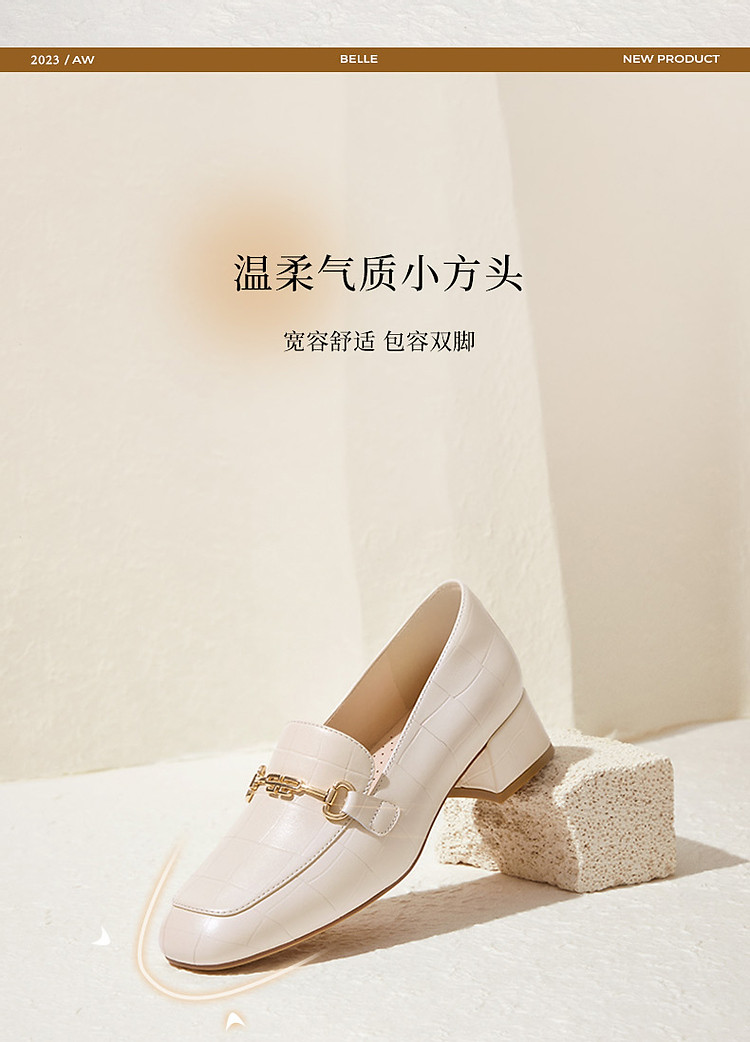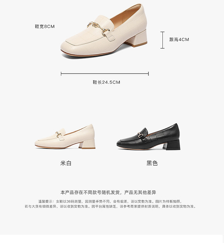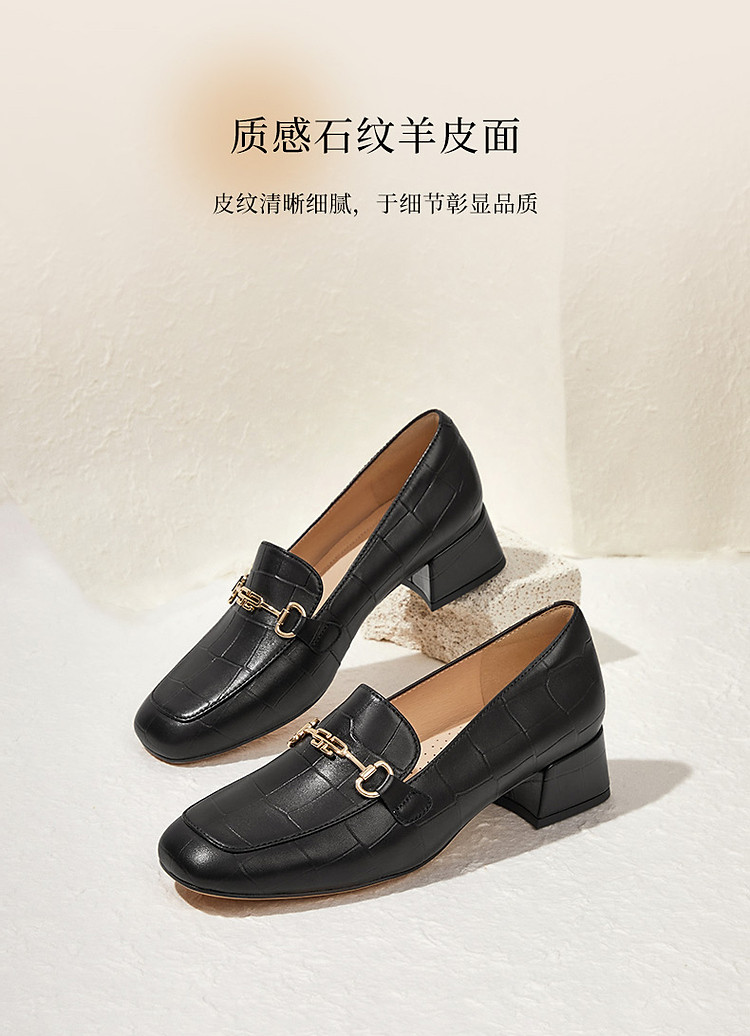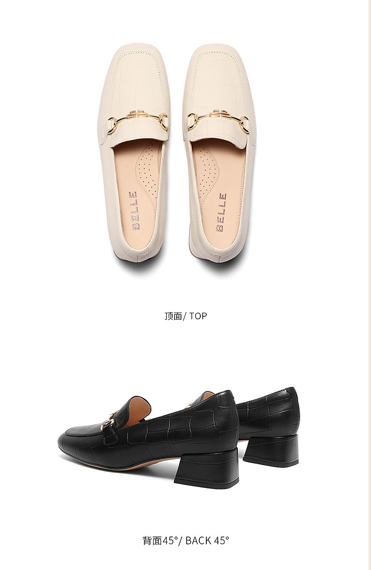 商品名称:百丽通勤乐福鞋女鞋子高跟鞋真皮上班穿不累脚单鞋 074586