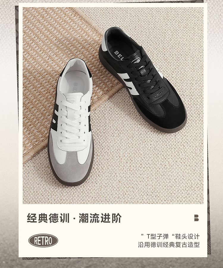 百丽男鞋夏季轻便休闲板鞋男商场款复古德训鞋运动鞋 030682