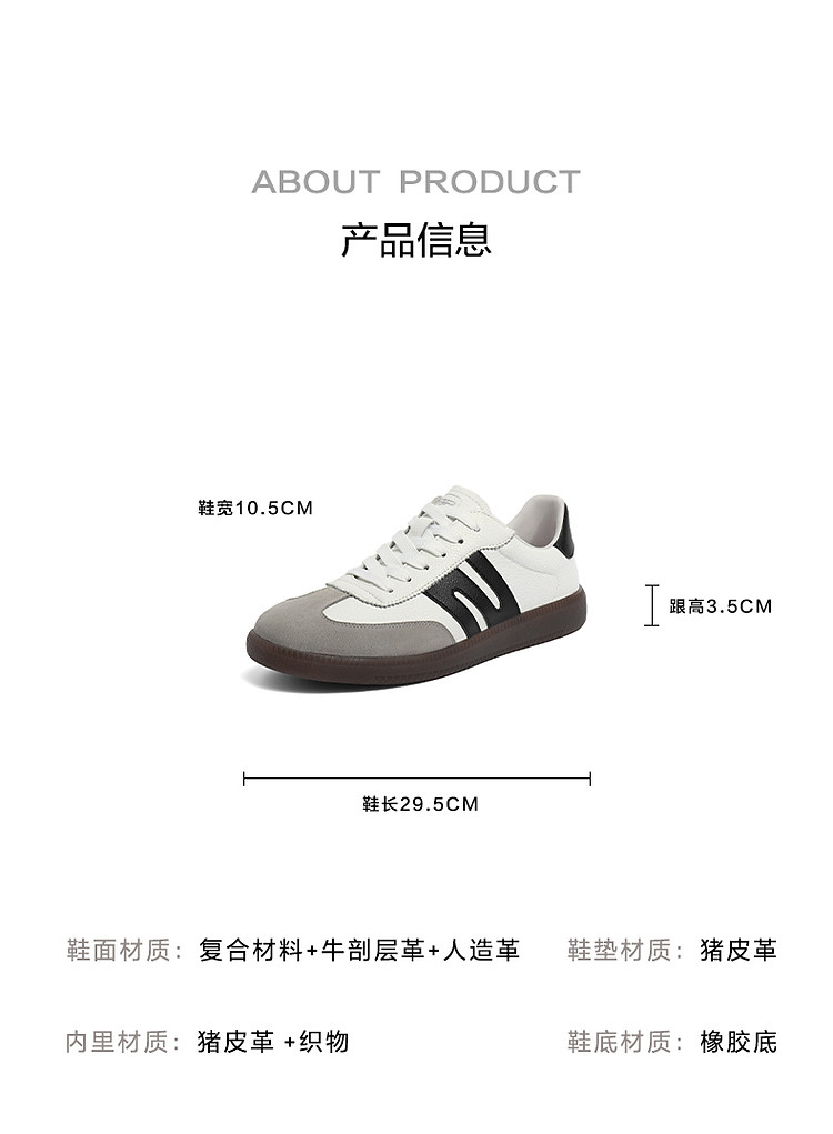 商品名称:百丽男鞋夏季轻便休闲板鞋男商场款复古德训鞋运动鞋 030682