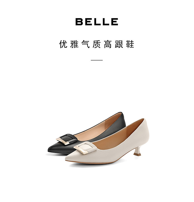 商品名称:【爆款推荐】百丽方扣高跟鞋女春夏舒适羊皮革优雅细跟单鞋 491930