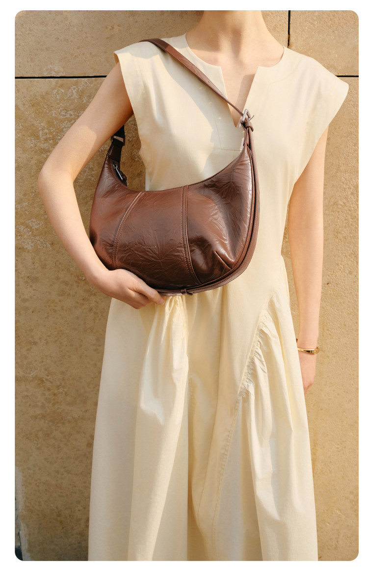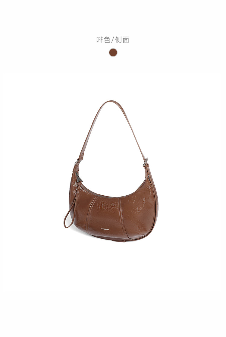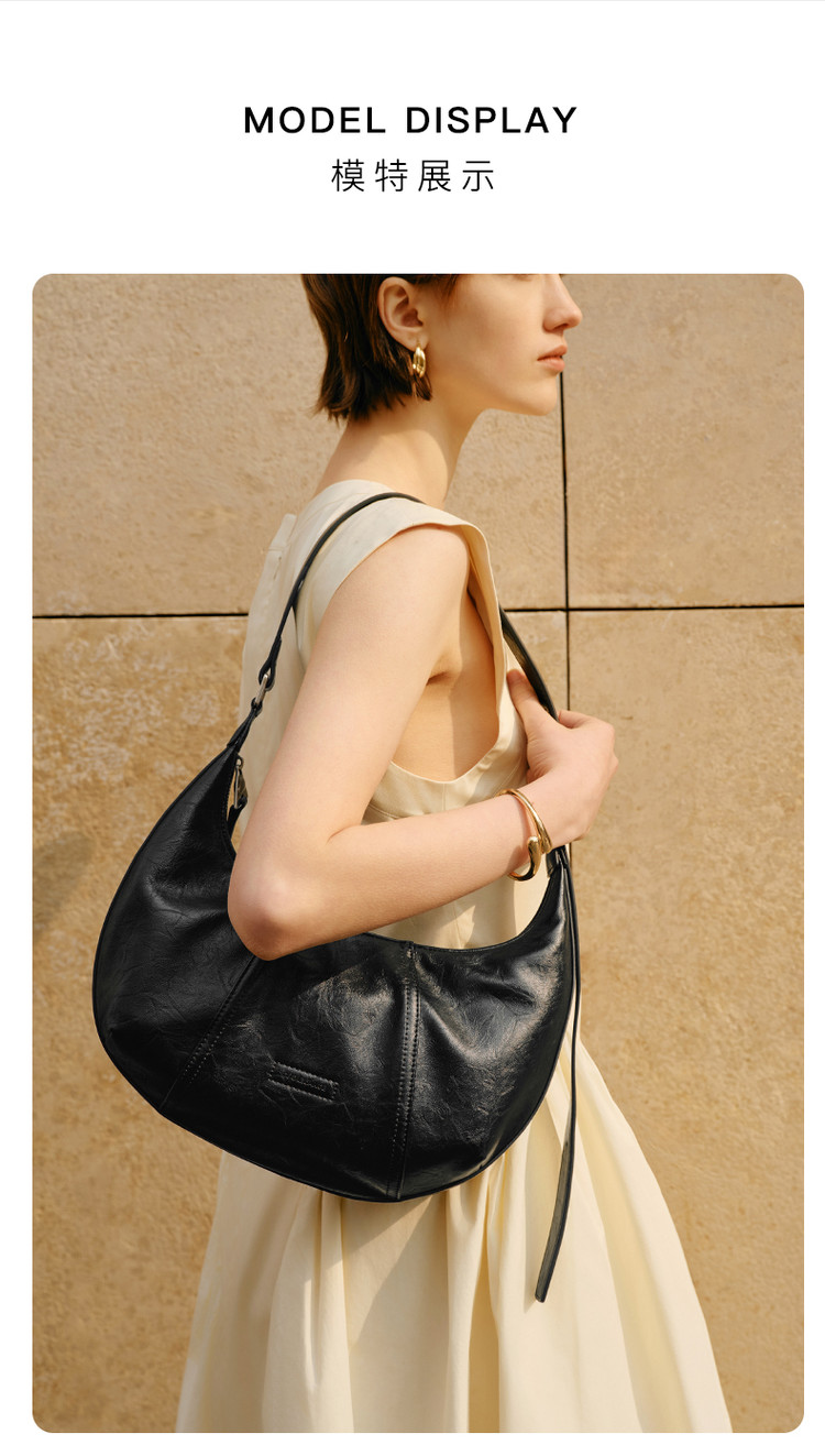 【气质机车】百丽时尚潮流通勤斜跨新月包褶皱油蜡皮面腋下包 292634