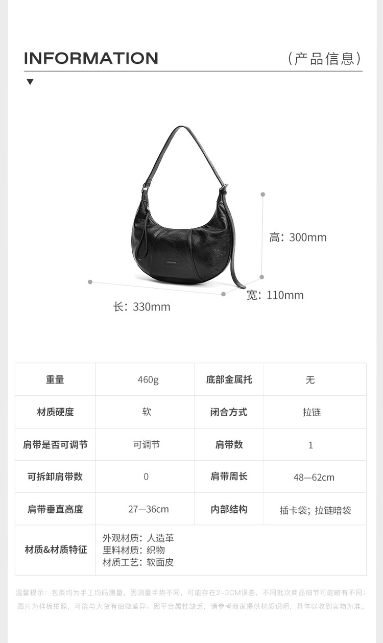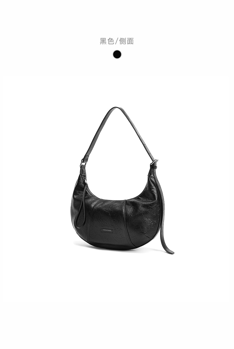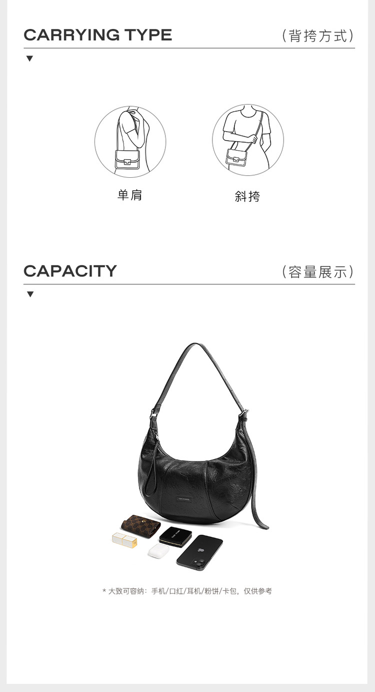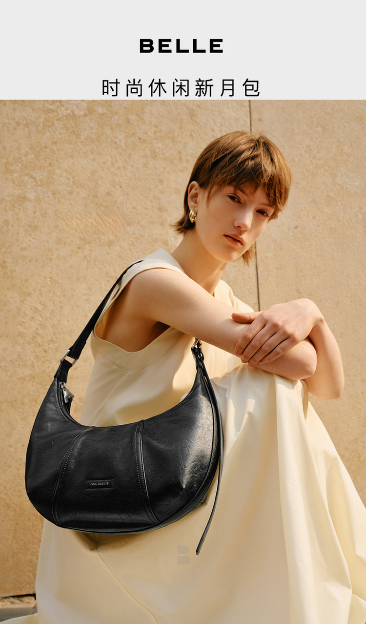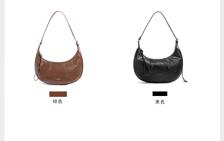 商品名称:【气质机车】百丽时尚潮流通勤斜跨新月包褶皱油蜡皮面腋下包 292634