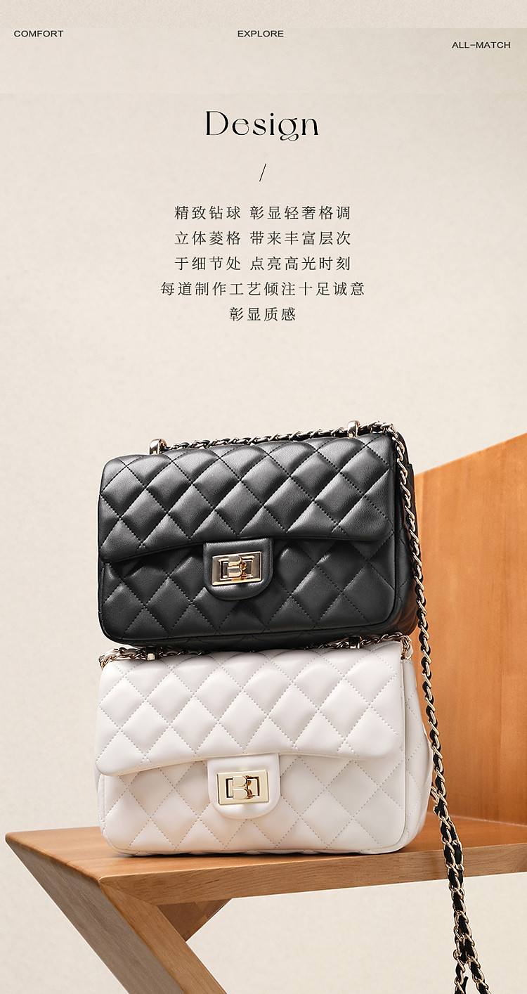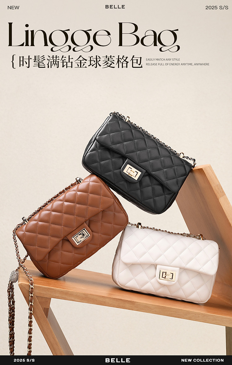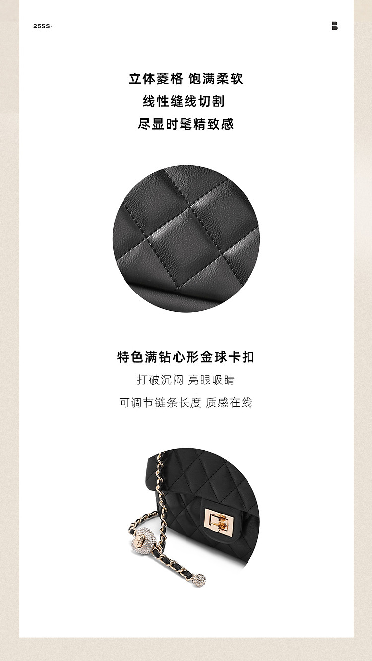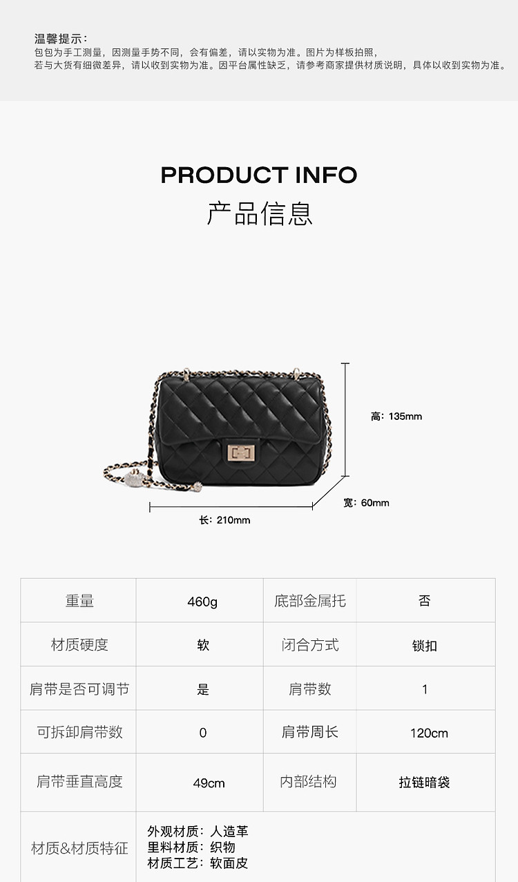 商品名称:【气质优雅】百丽软感百搭小方包精致简约单肩斜跨菱格链条包 975898