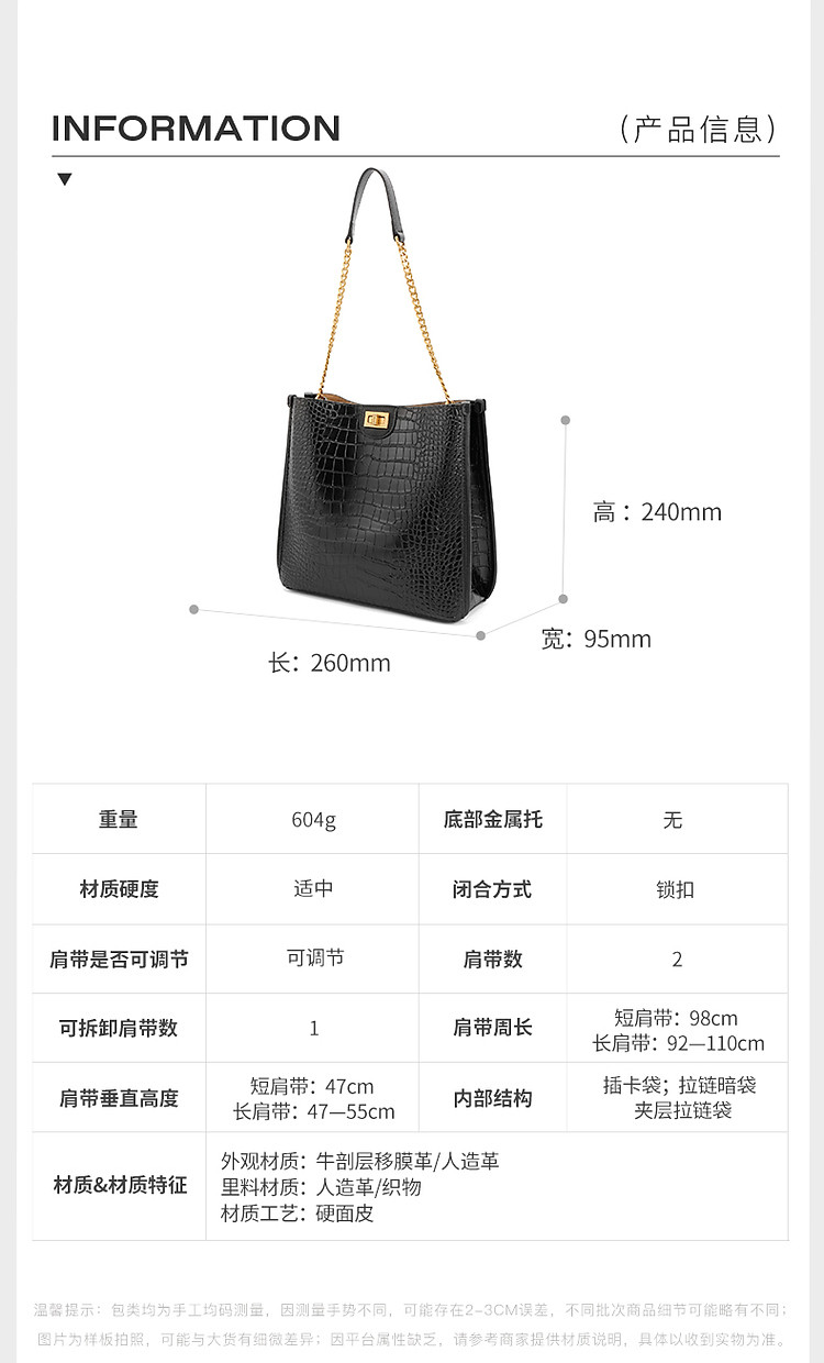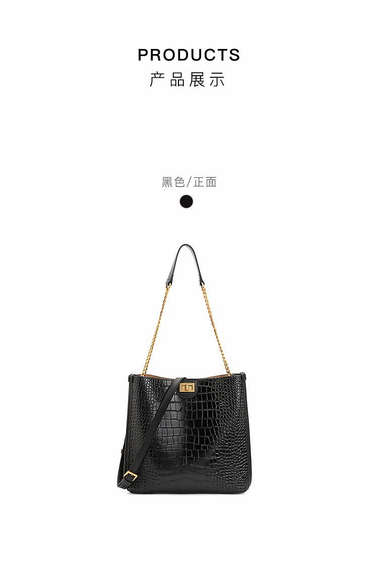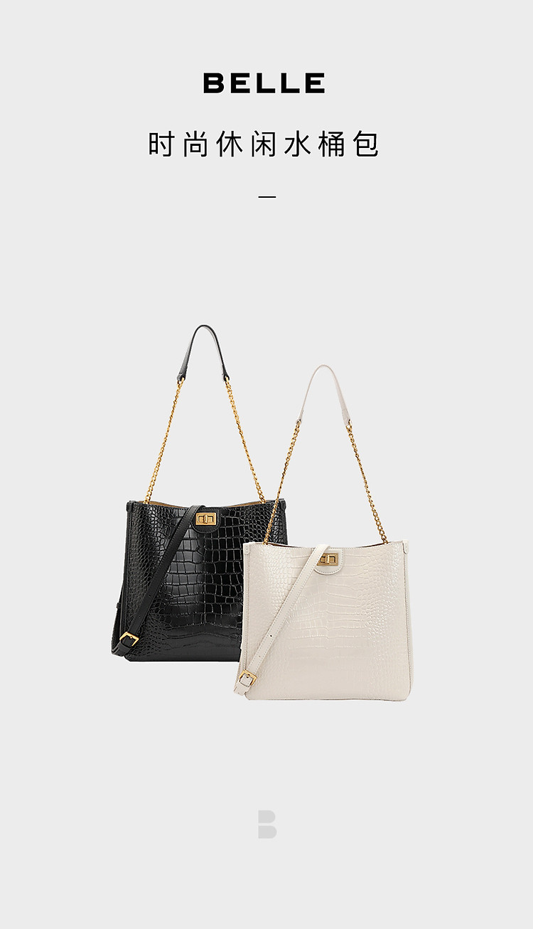 商品名称:【漆皮鳄鱼纹】百丽春秋高级经典腋下包大容量质感单肩水桶包 820890