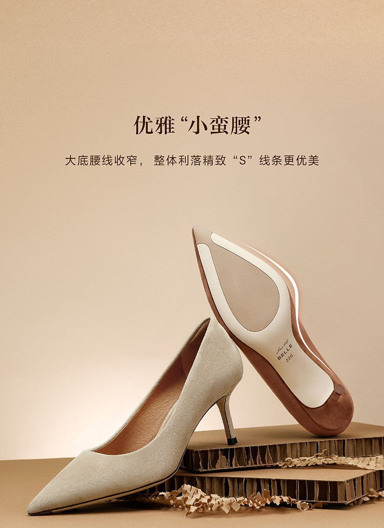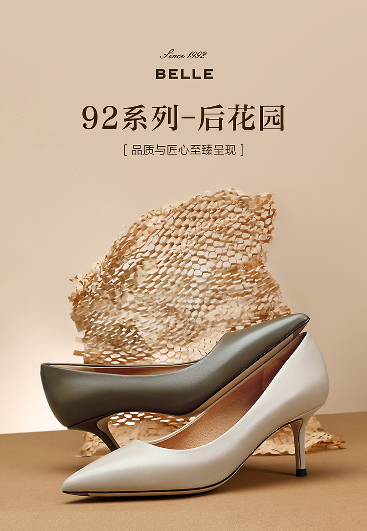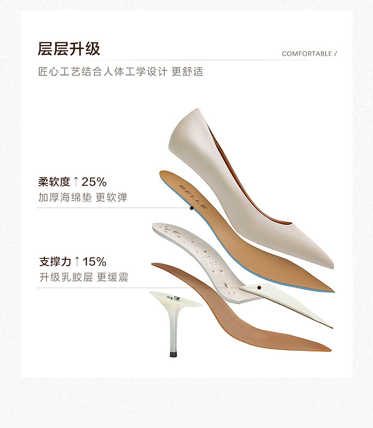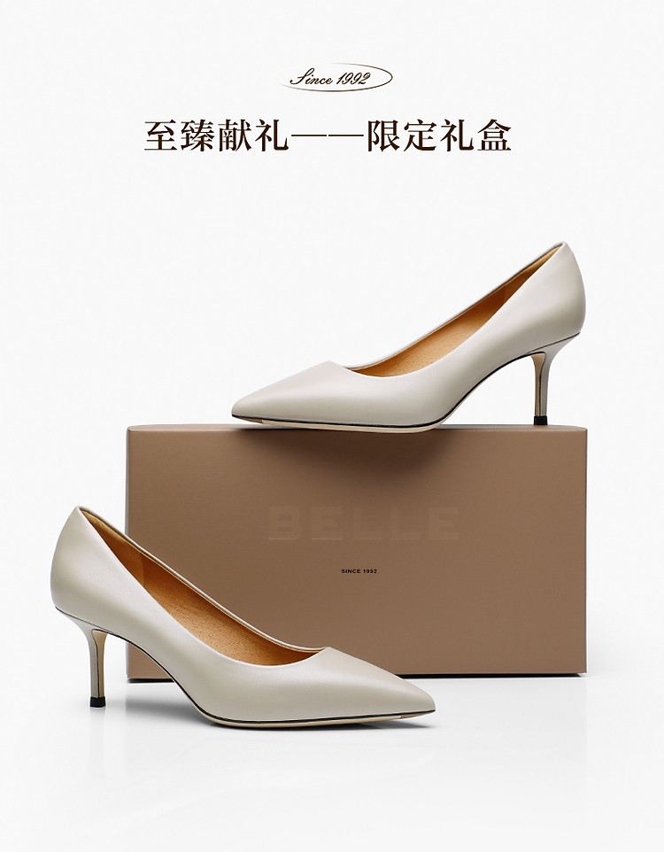 商品名称:百丽92系列真皮黑色尖头细高跟鞋新女婚鞋上班穿单鞋子 322458