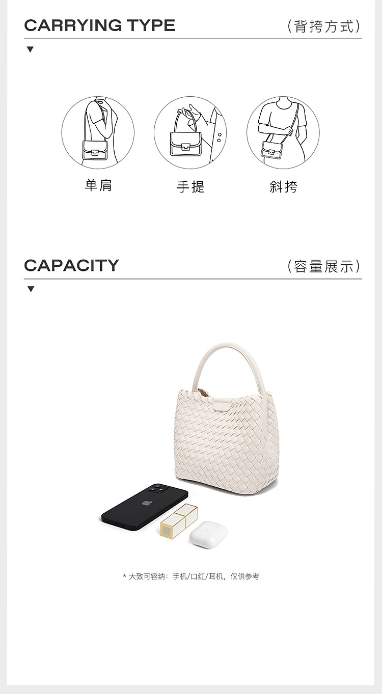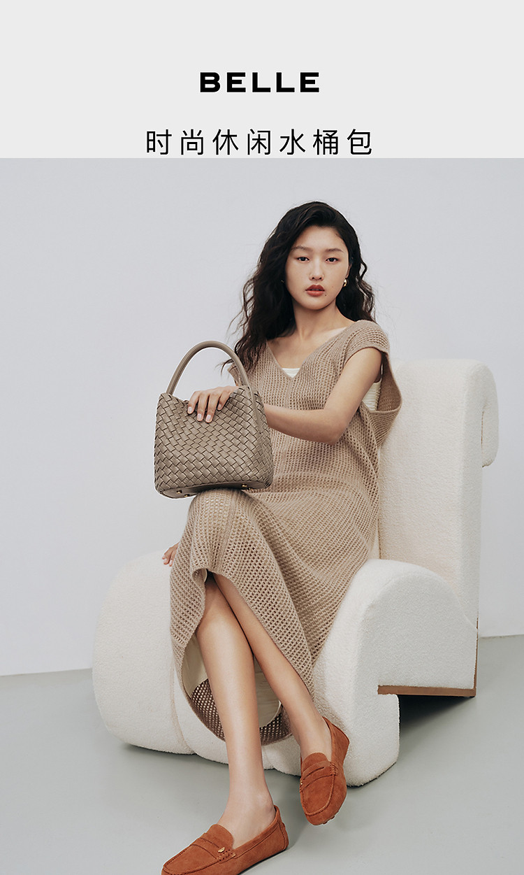 商品名称:【花篮系列】百丽春夏假日菜篮包柔软编织手提水桶包 652570