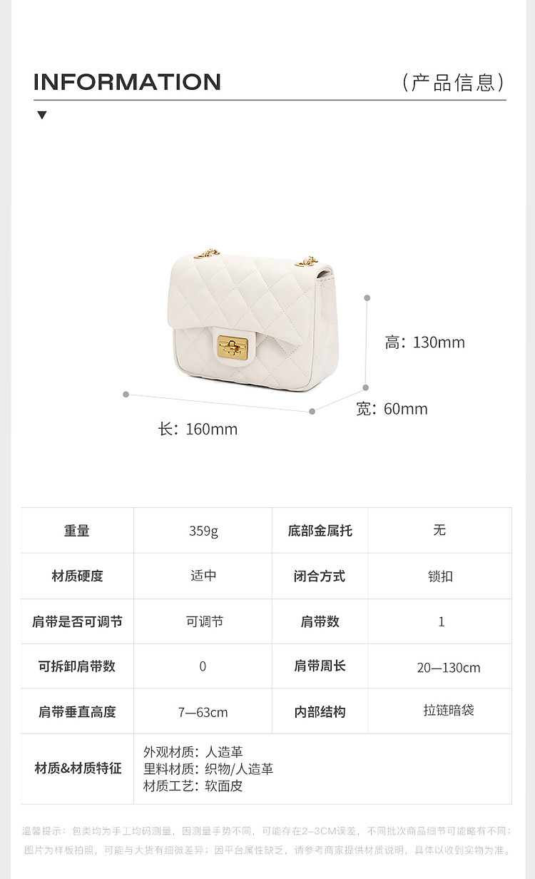 商品名称:【优雅百搭】百丽春夏小香风小方包精致小巧斜挎菱格包 304218