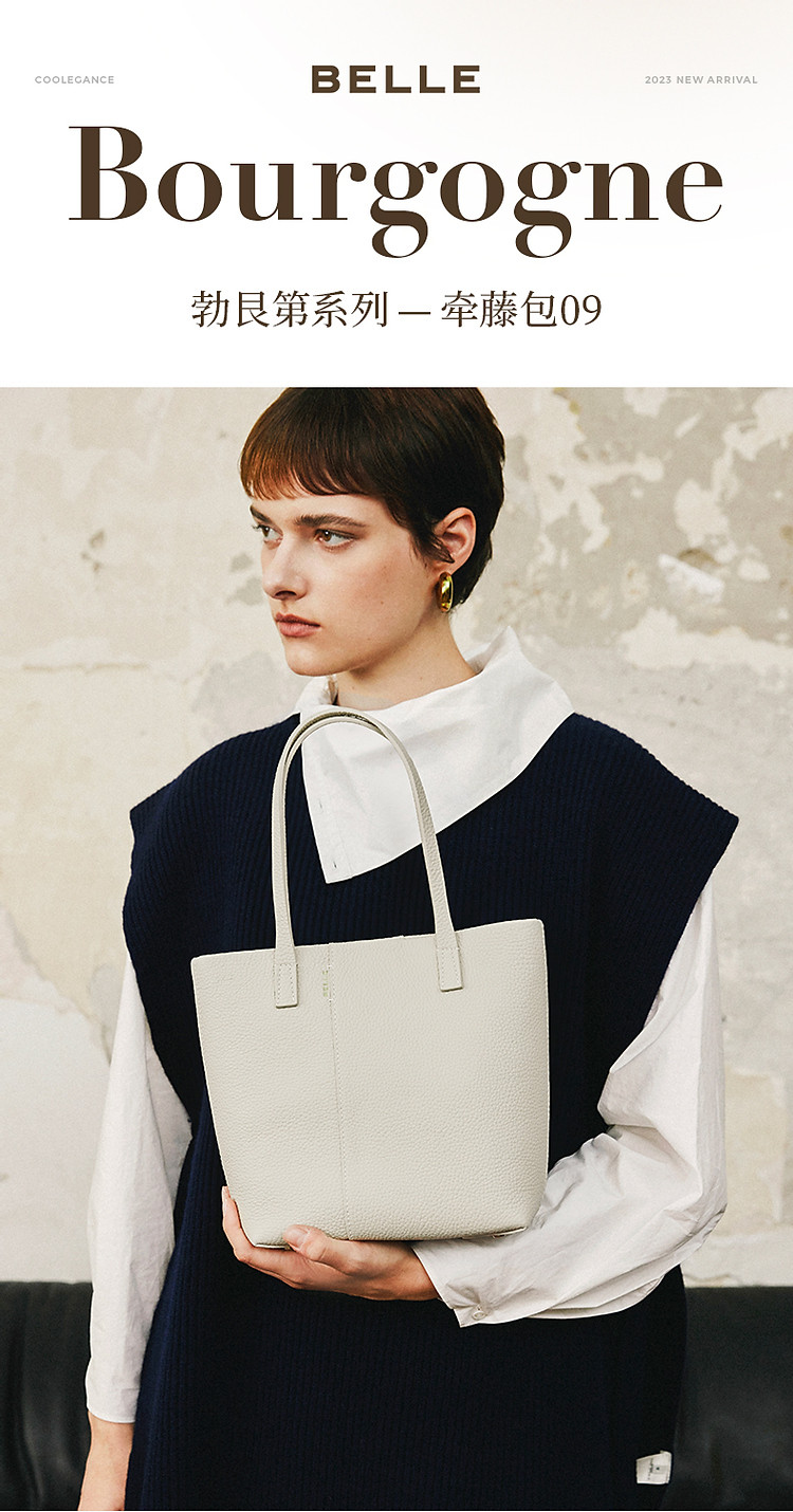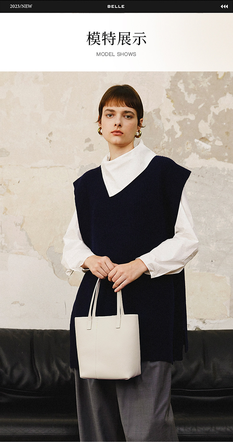 商品名称:【勃艮第系列】百丽牛皮质感牵藤包简约休闲托特包 735898