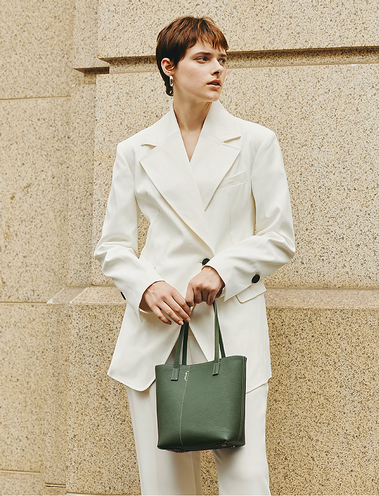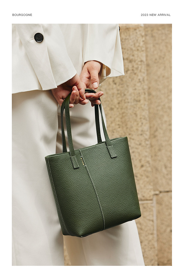 【勃艮第系列】百丽牛皮质感牵藤包简约休闲托特包 735898