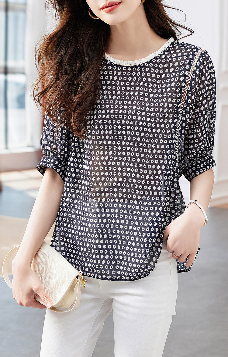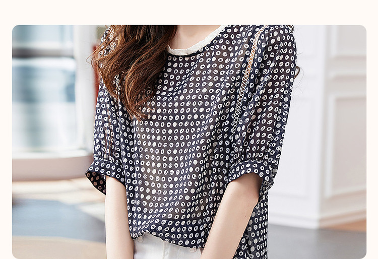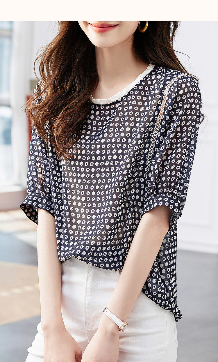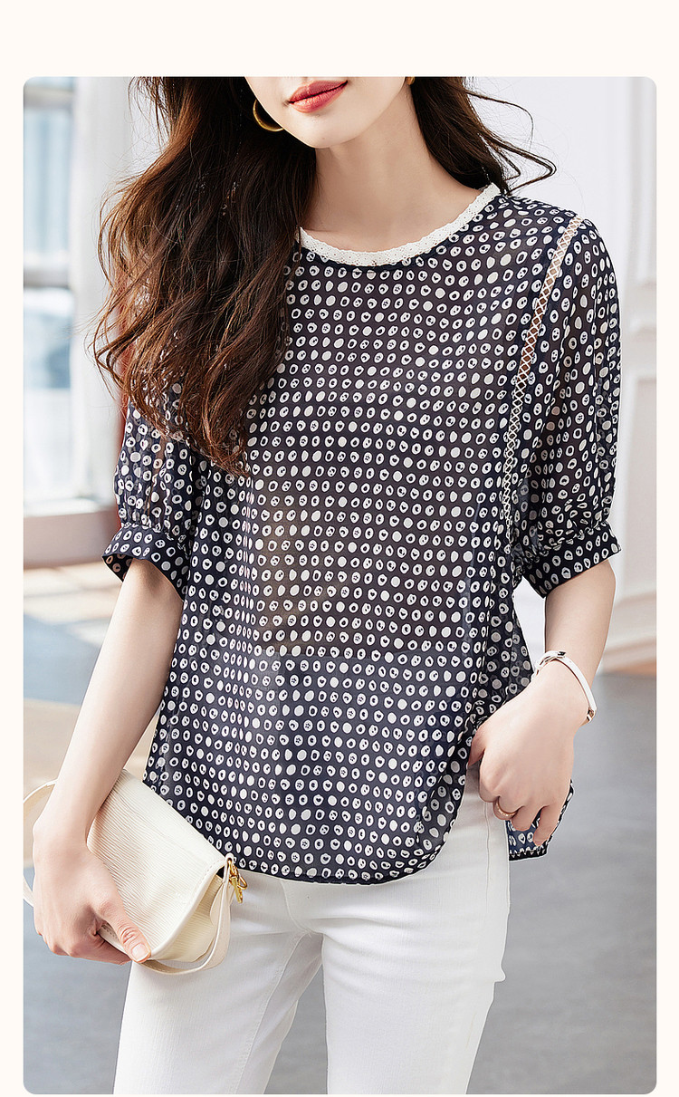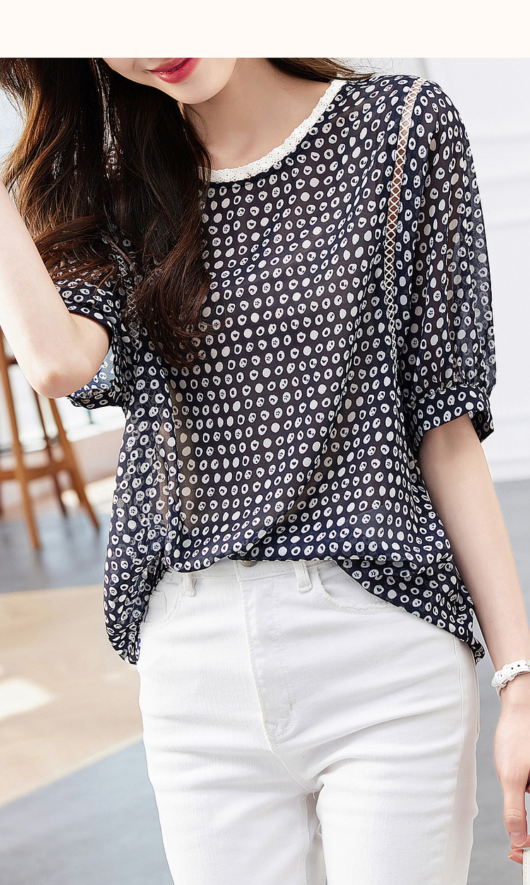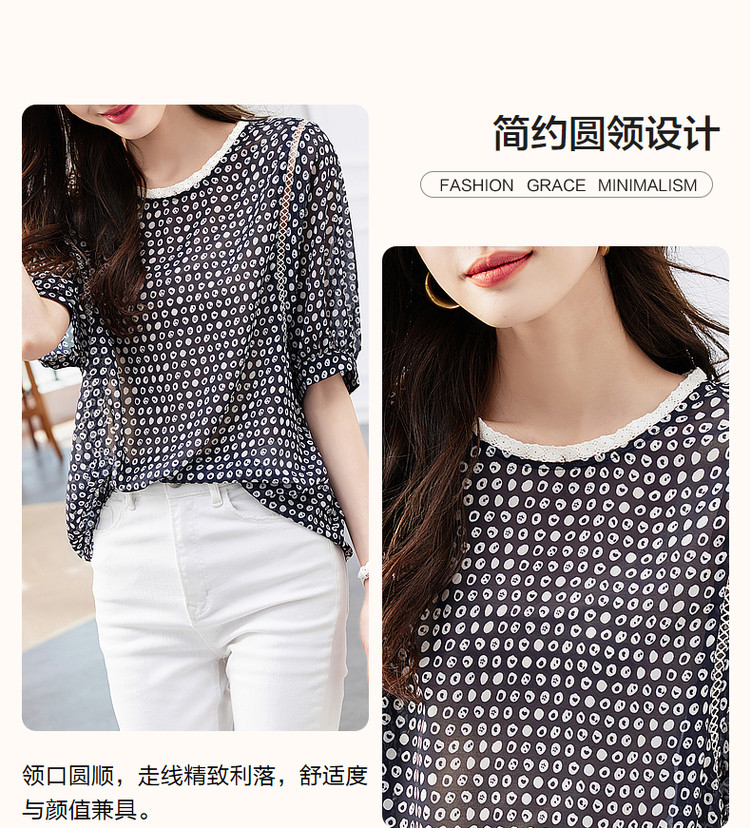 商品名称:【雪纺珠圆点印花衬衫】夏圆领合体短袖衬衣女装上衣 253825