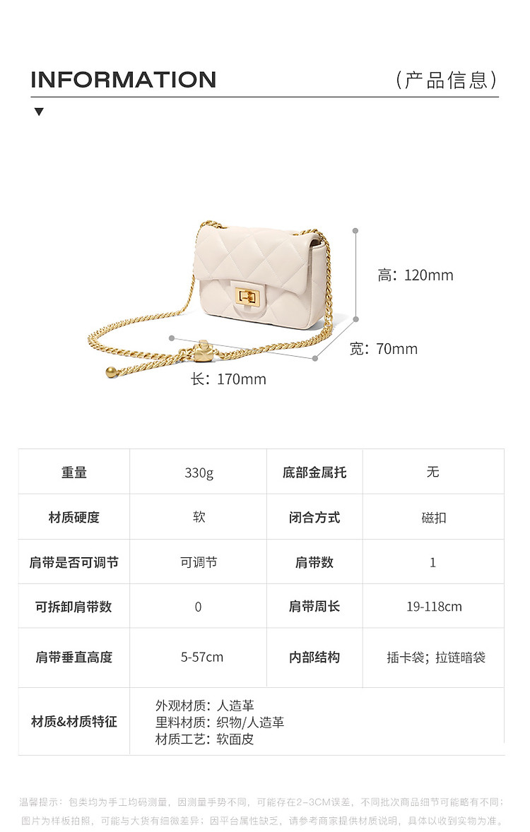商品名称:百丽时尚休闲小方包商场同款菱格链条包 268570