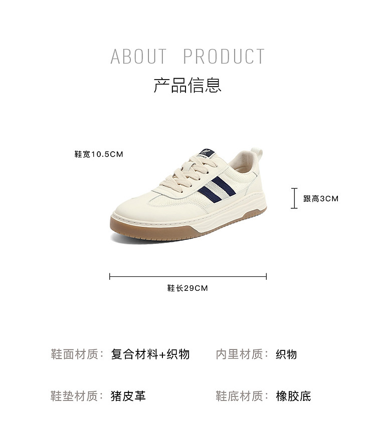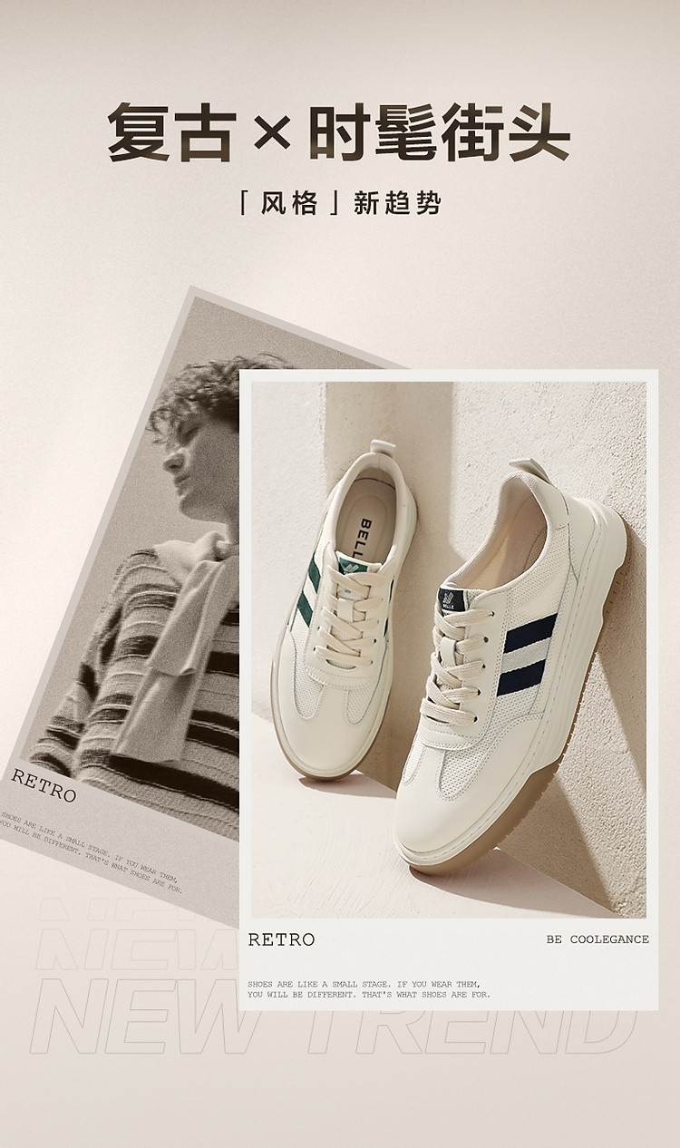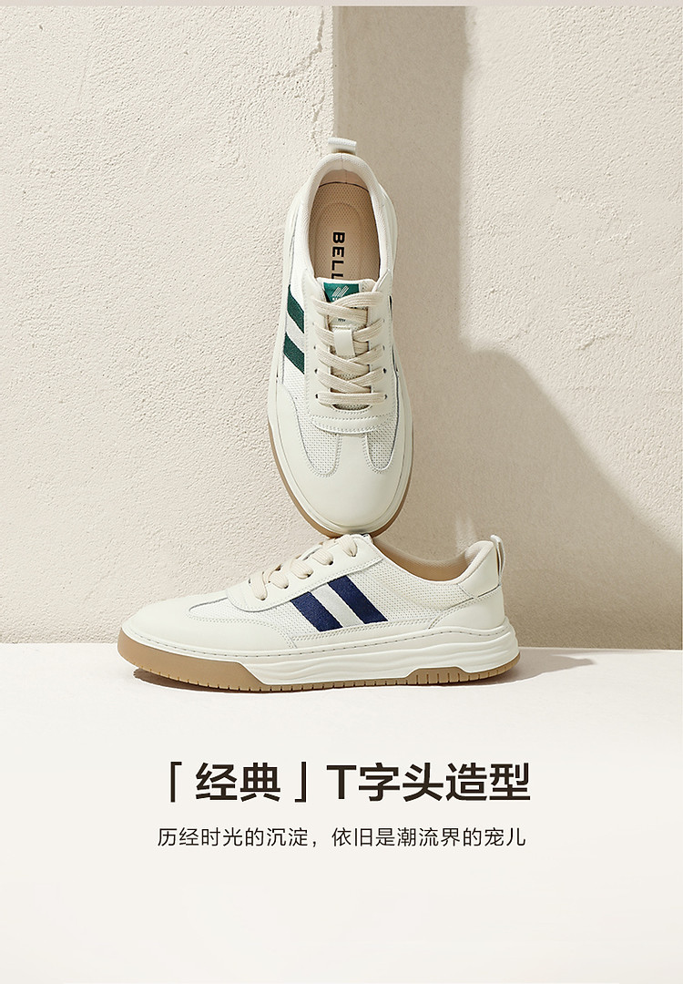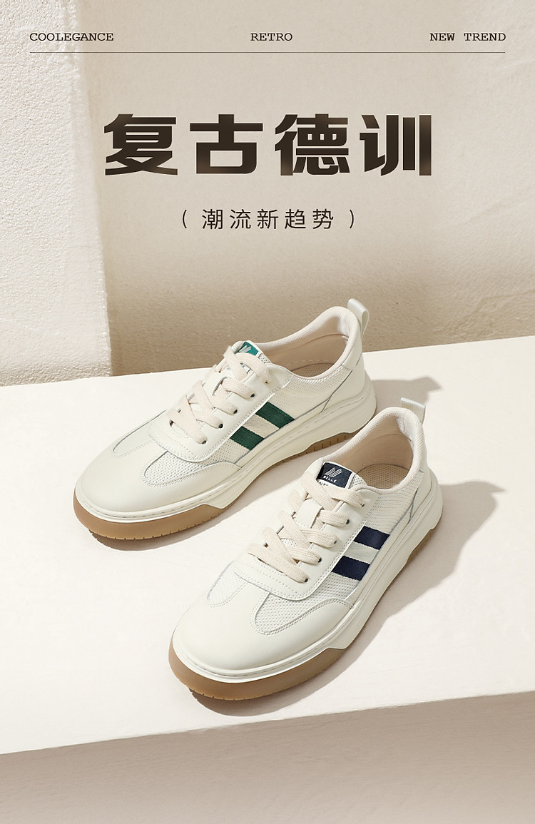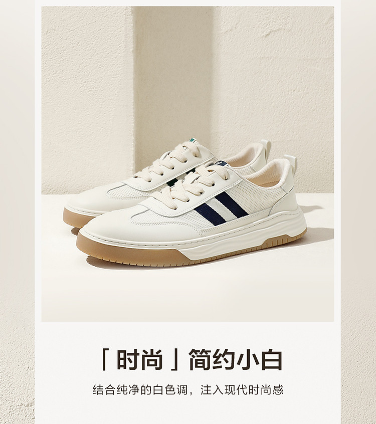 商品名称:百丽男鞋夏季透气小白鞋休闲鞋子男款板鞋复古德训鞋 090778