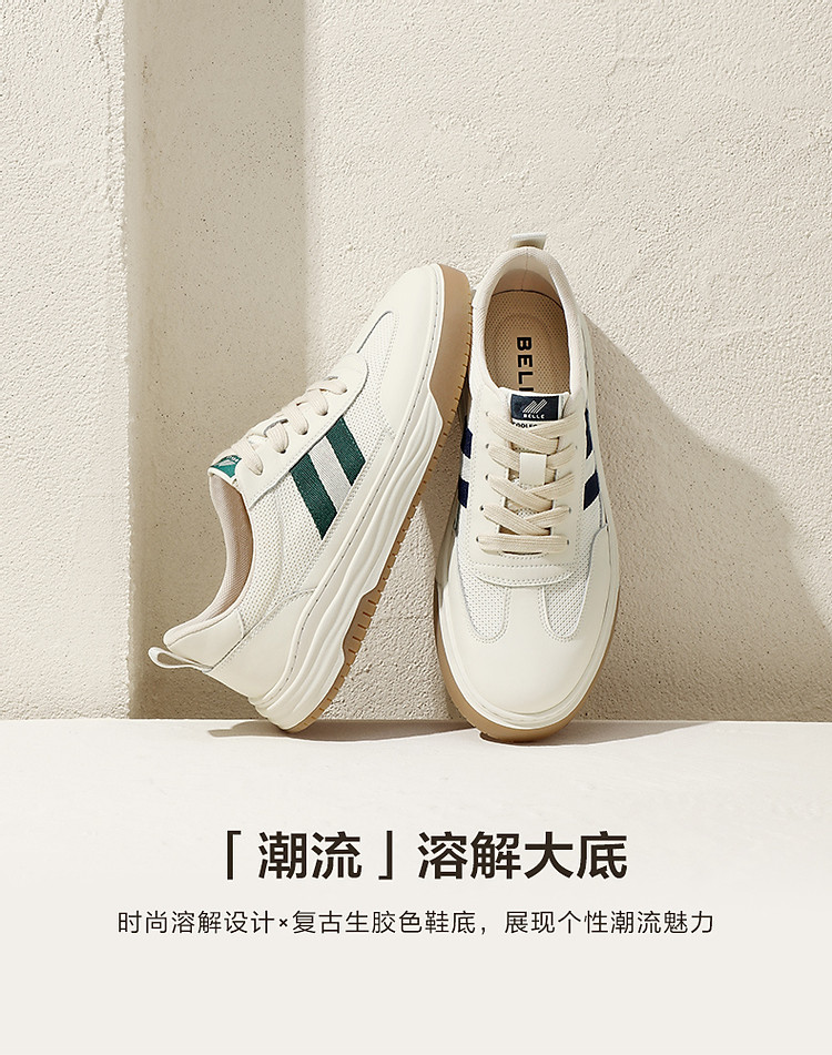百丽男鞋夏季透气小白鞋休闲鞋子男款板鞋复古德训鞋 090778
