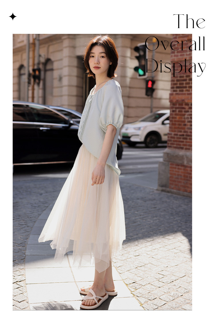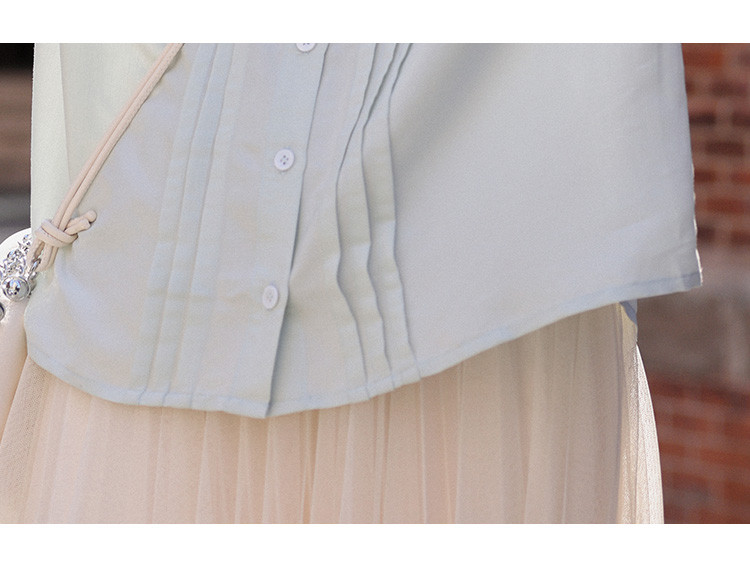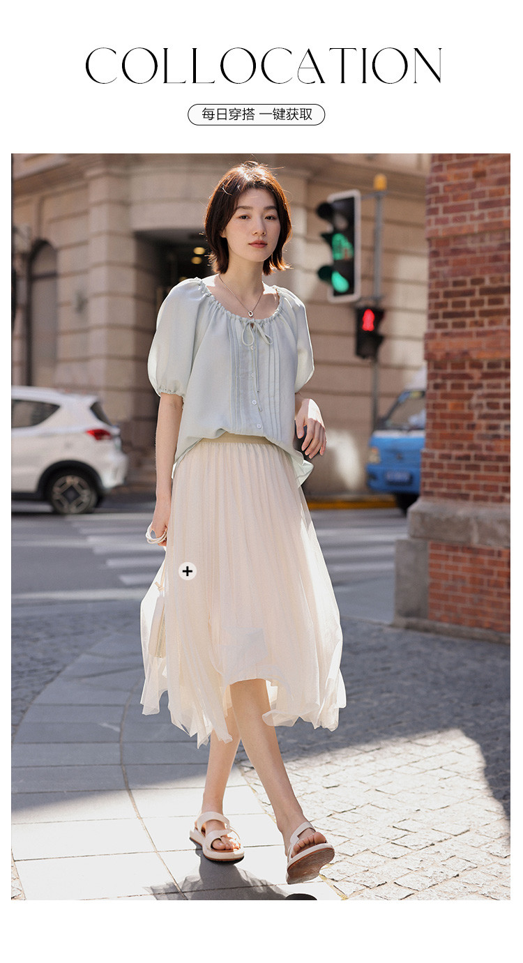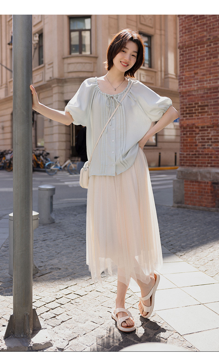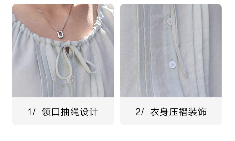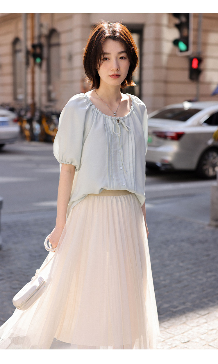 商品名称:【泡泡袖衬衣】夏款法式慵懒压褶系带短袖衬衫女 793026