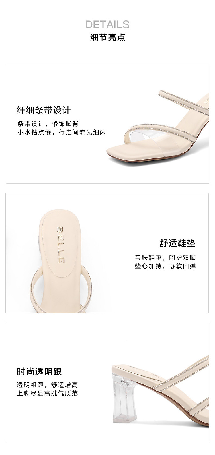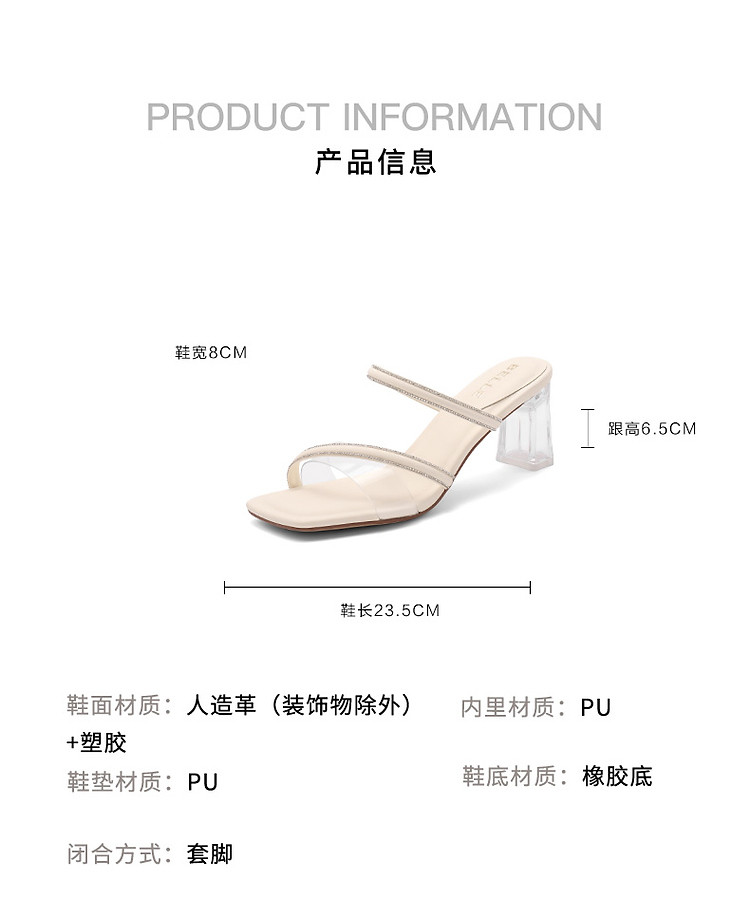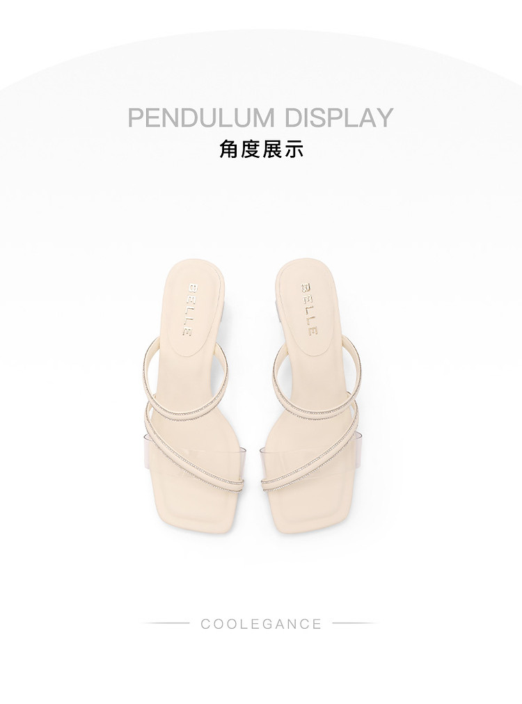 商品名称:百丽女鞋子一字凉拖粗高跟鞋绝美凉鞋春夏外穿拖鞋 352794