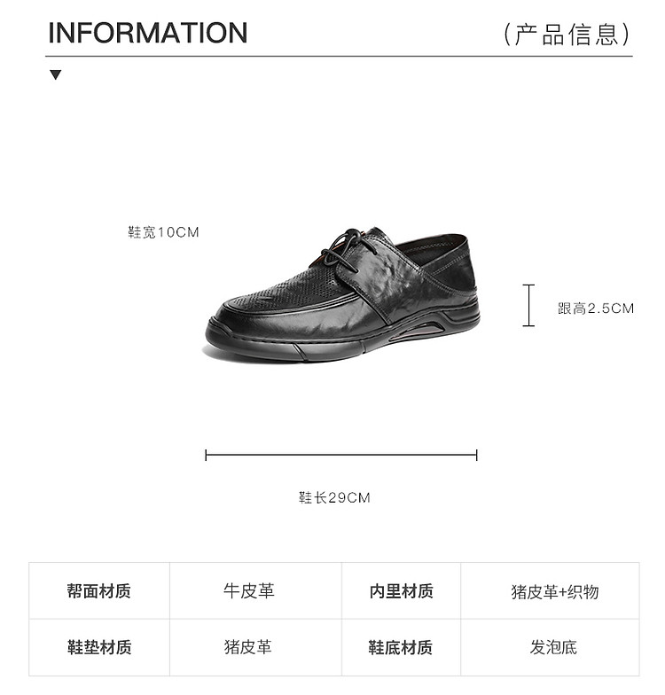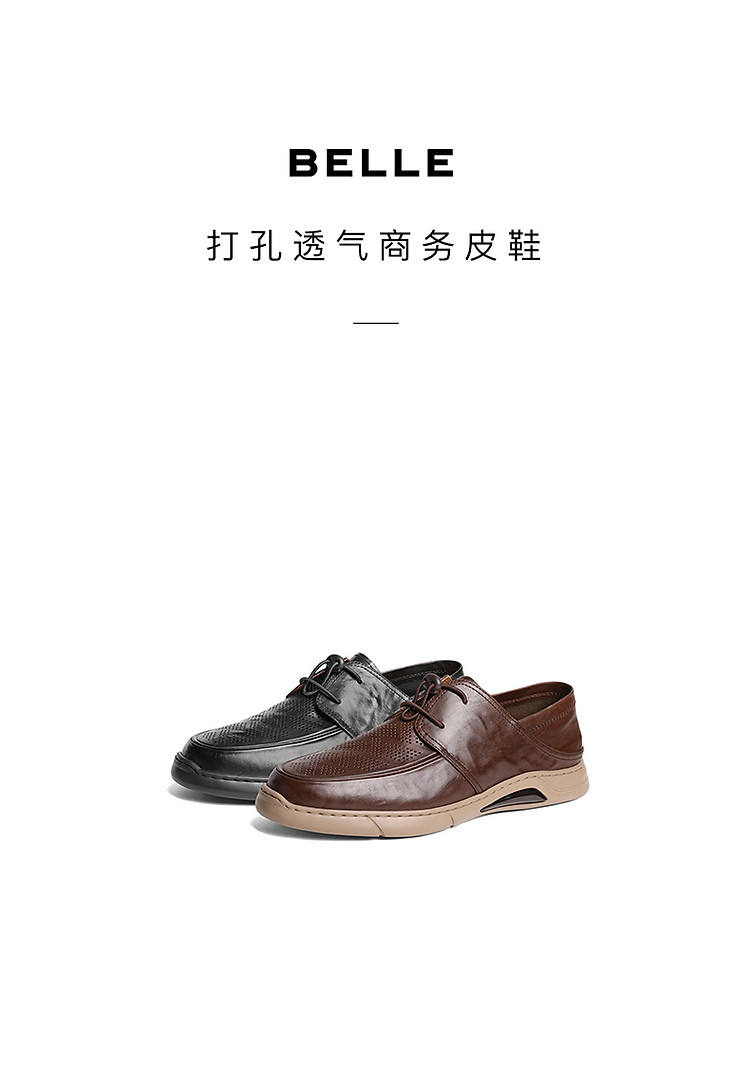 商品名称:百丽商务鞋男款春新商场同款牛皮革打孔透气休闲皮鞋 760794