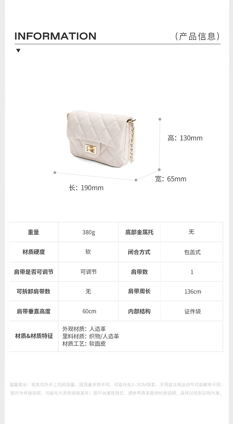 商品名称:【热卖爆款】百丽时尚链条气质优雅经典菱格斜跨小方包 601690