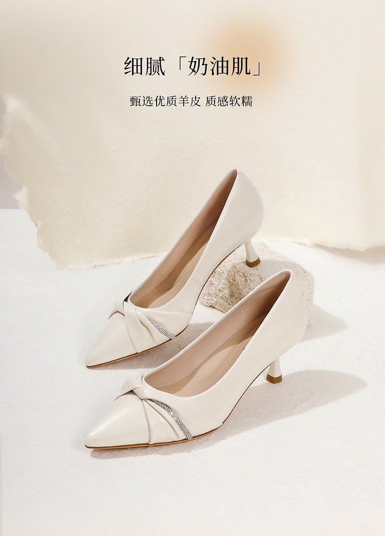 百丽细跟气质高跟鞋女鞋婚鞋真皮小鞋子上班穿单鞋 506010