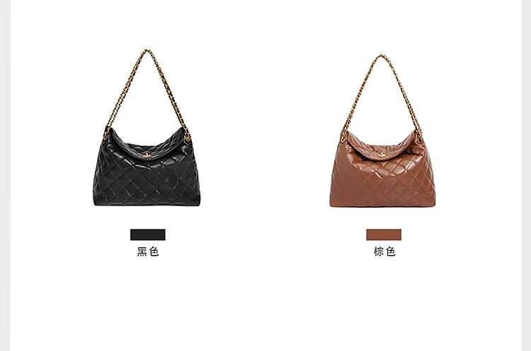 【气质优雅】百丽爆款小香风菱格通勤HOBO包大容量托特包 266330