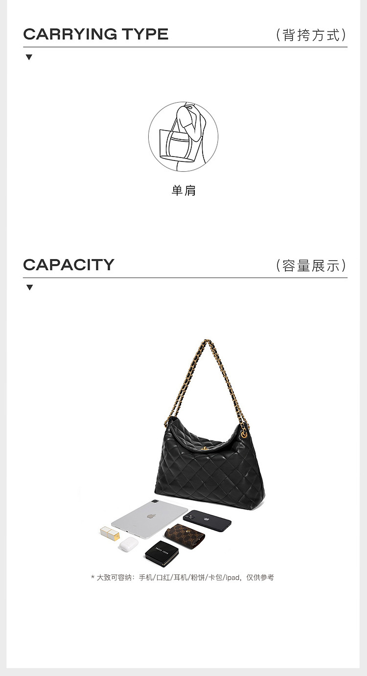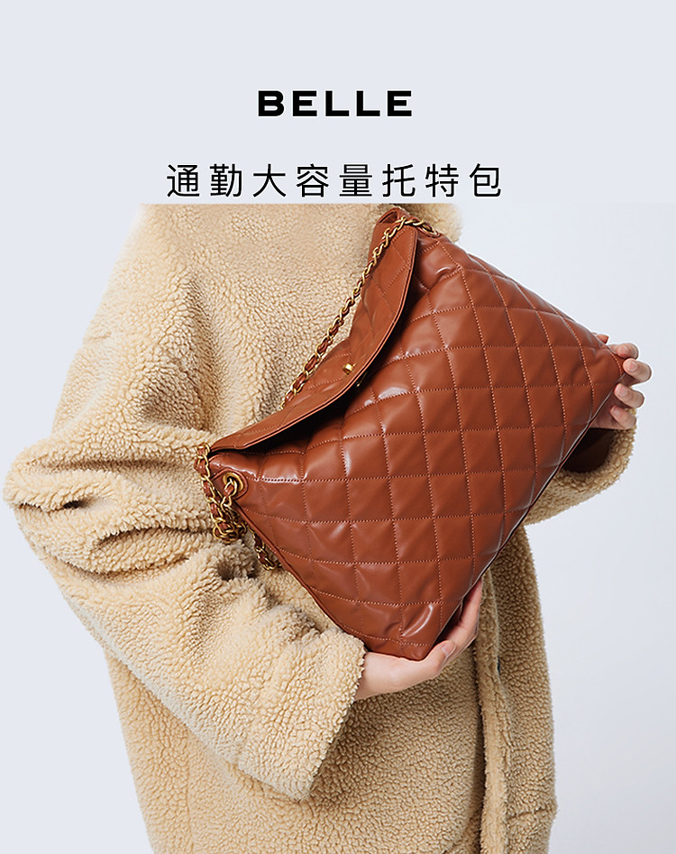 商品名称:【气质优雅】百丽爆款小香风菱格通勤HOBO包大容量托特包 266330