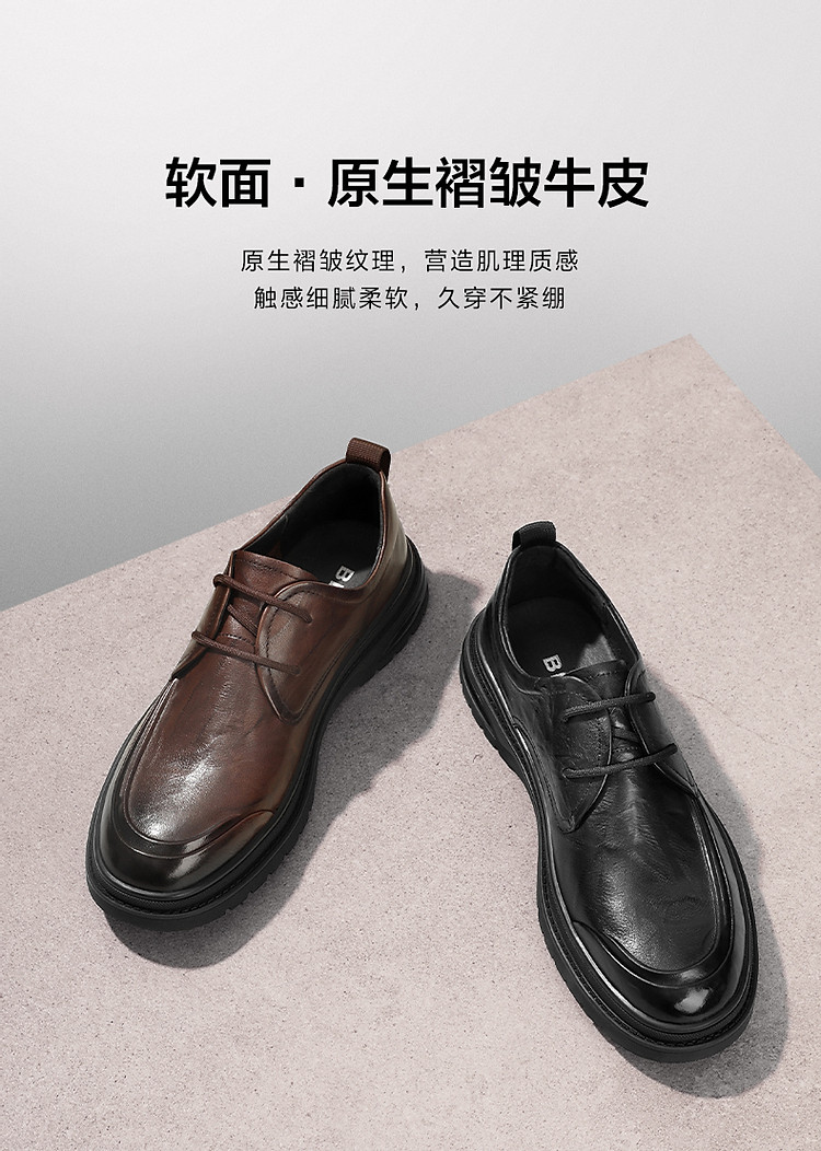 百丽男鞋商务皮鞋男软底爸爸鞋真皮休闲鞋德比鞋 991898