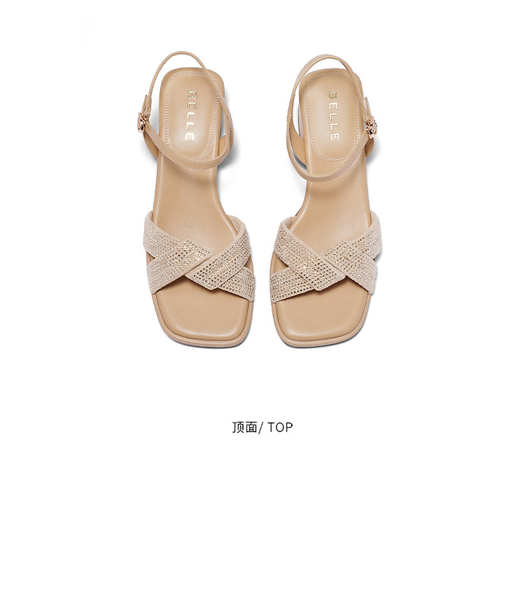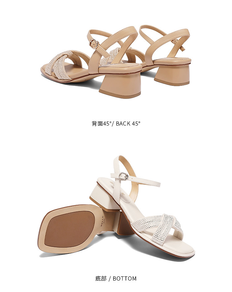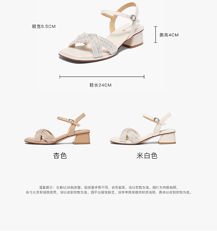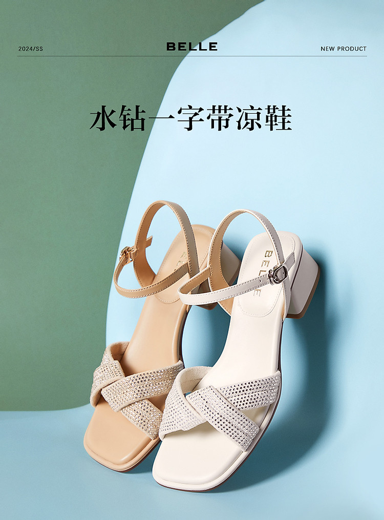 商品名称:百丽女鞋子粗高跟鞋凉拖鞋女夏外穿水钻一字带凉鞋 504602