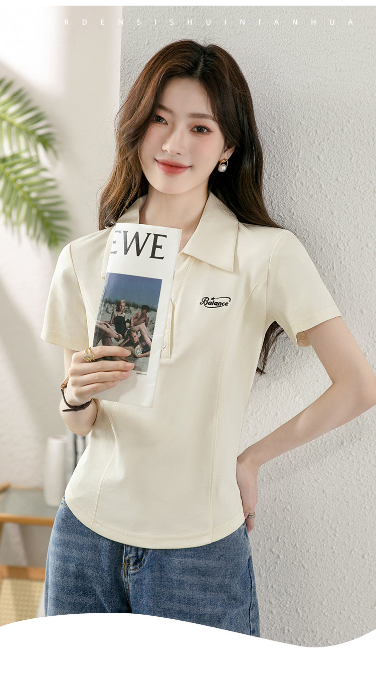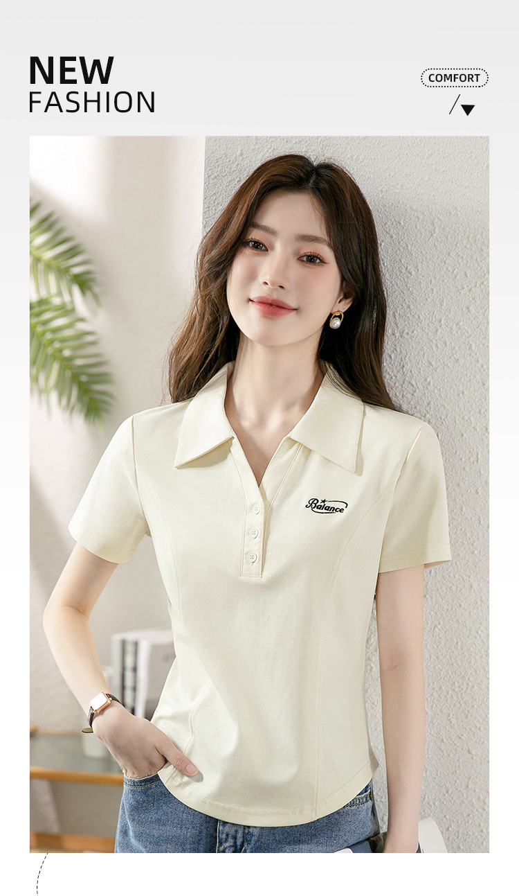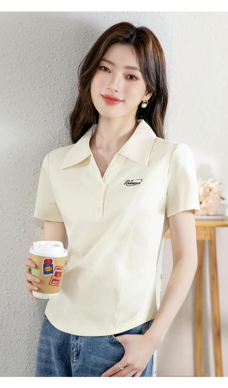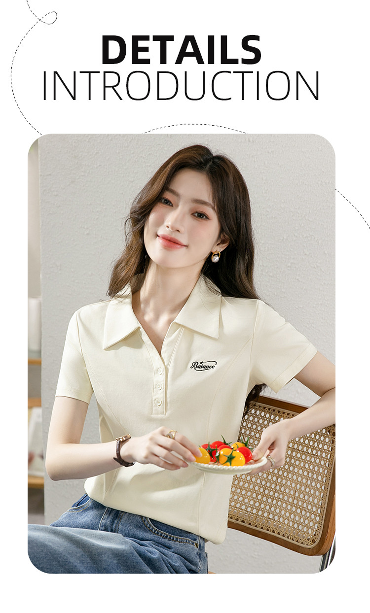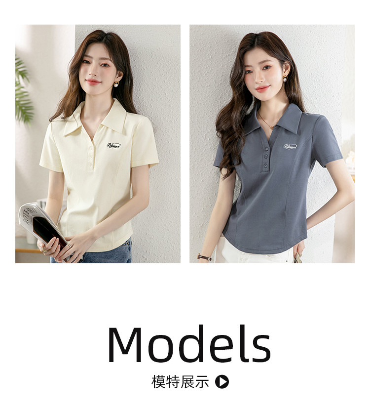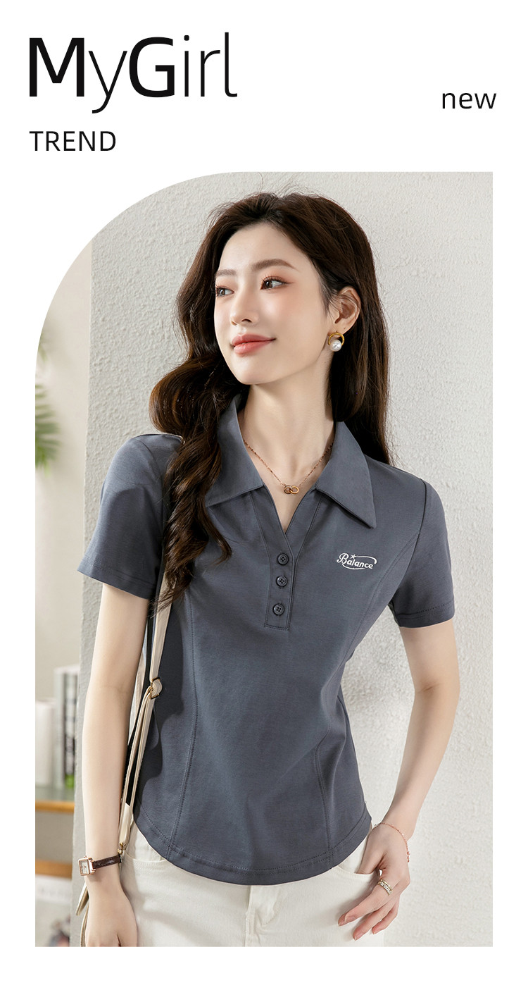 商品名称:【POLO领设计】夏季女款简约短袖T恤时尚修身显瘦休闲上衣 627160