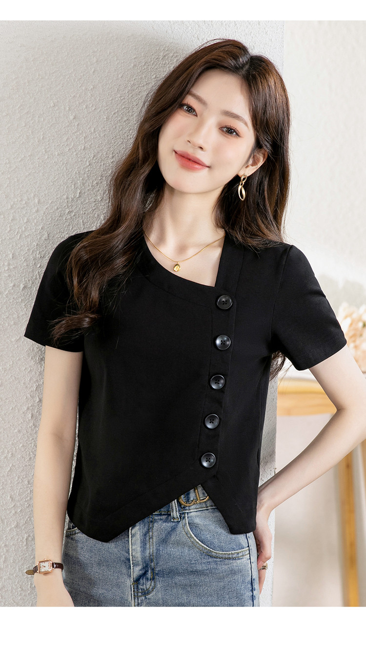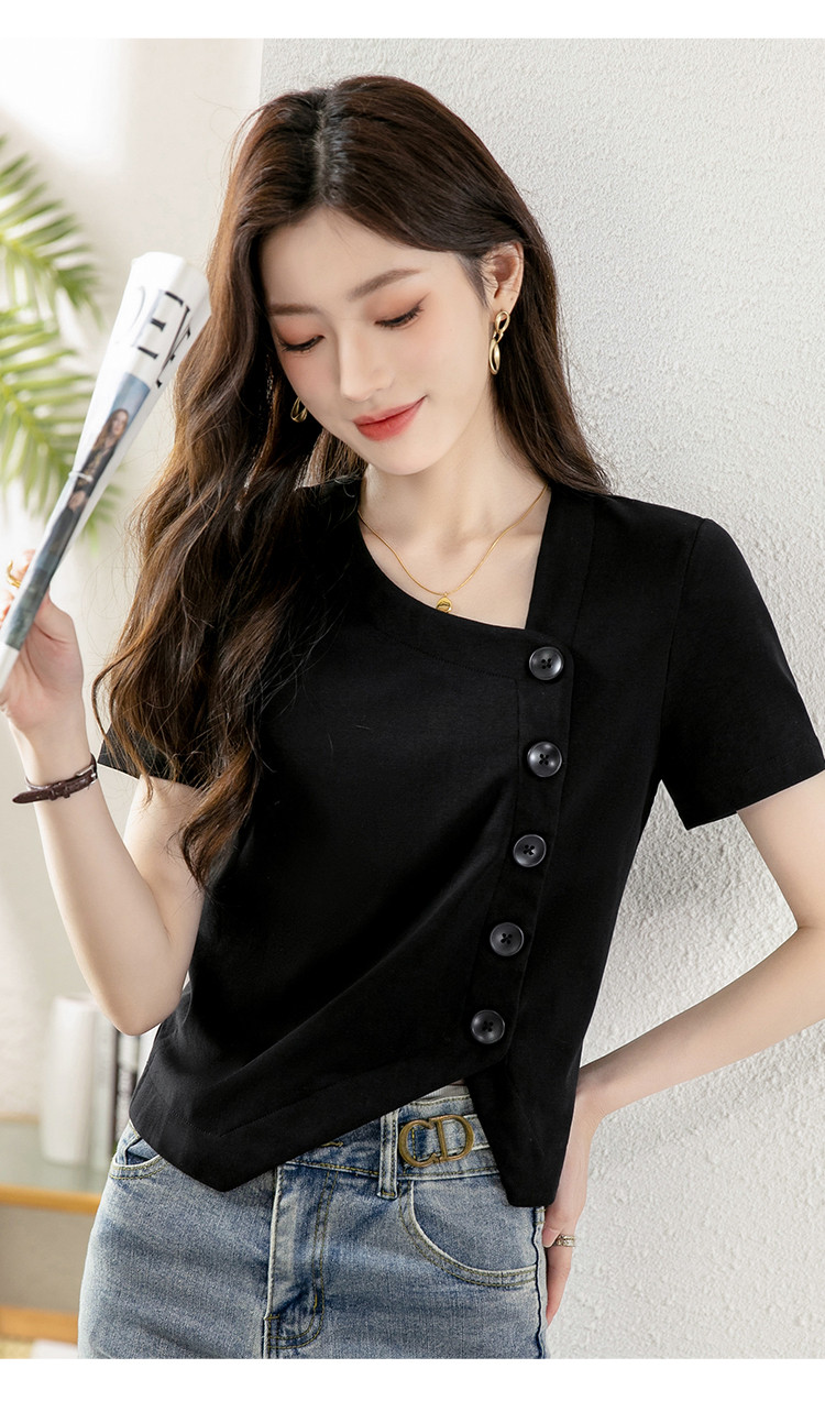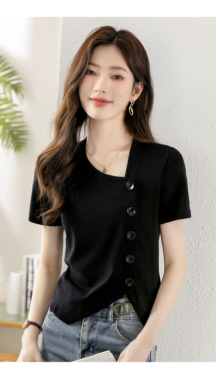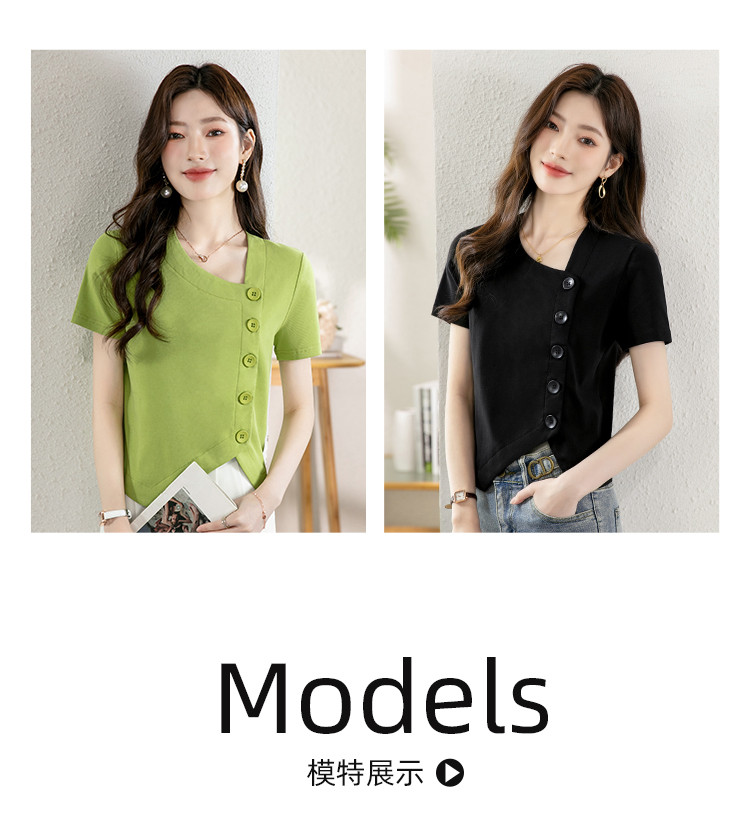 商品名称:【斜领纽扣不规则设计】夏季休闲时尚短袖T恤女上衣潮流 788504