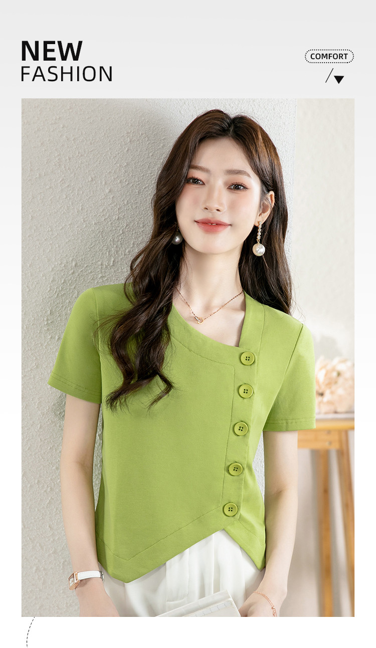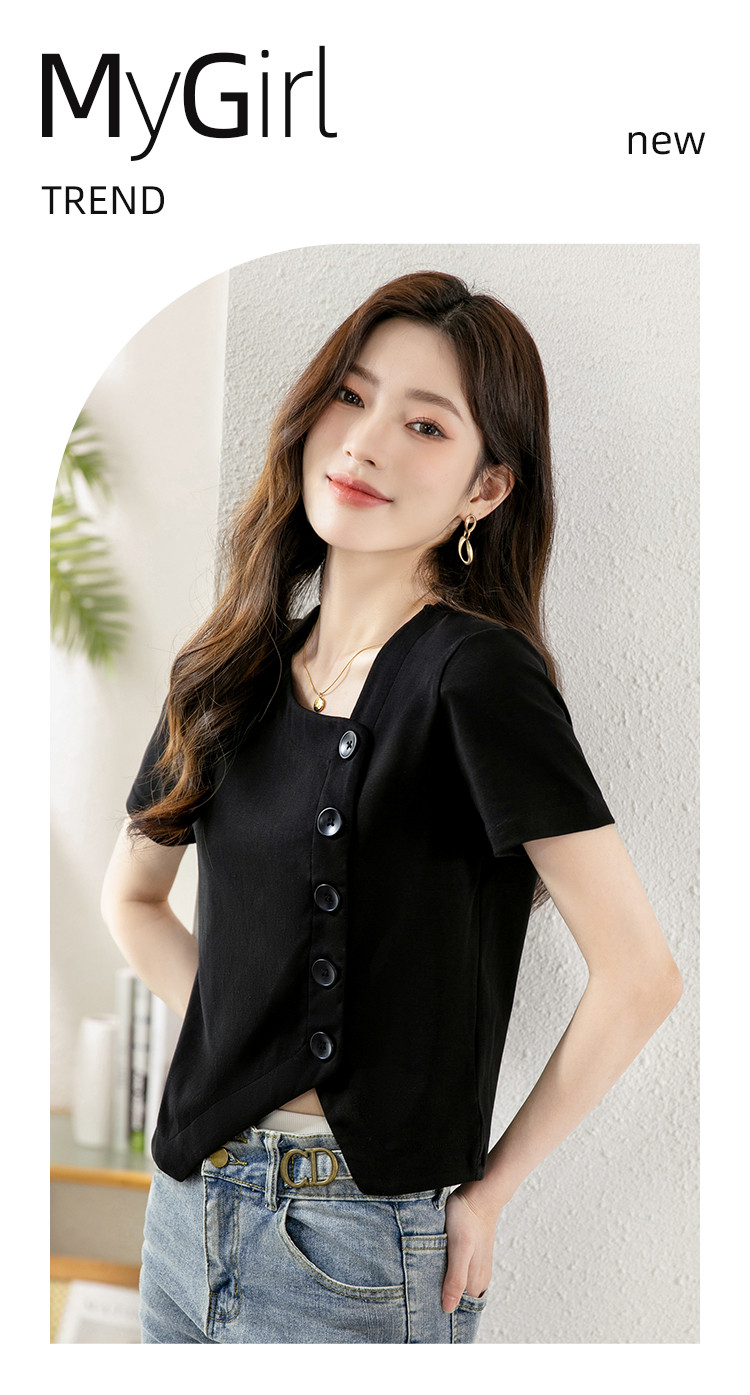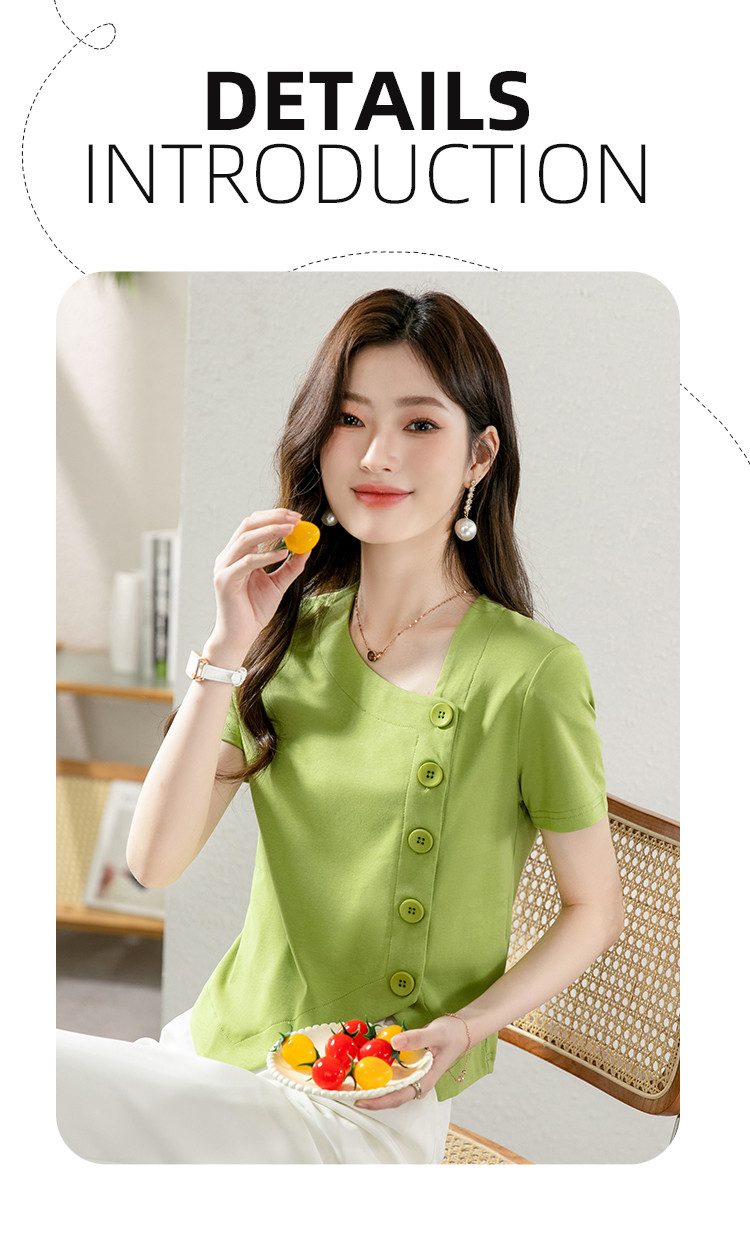 商品名称:【斜领纽扣不规则设计】夏季休闲时尚短袖T恤女上衣潮流 788504