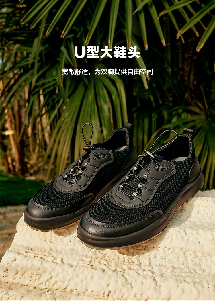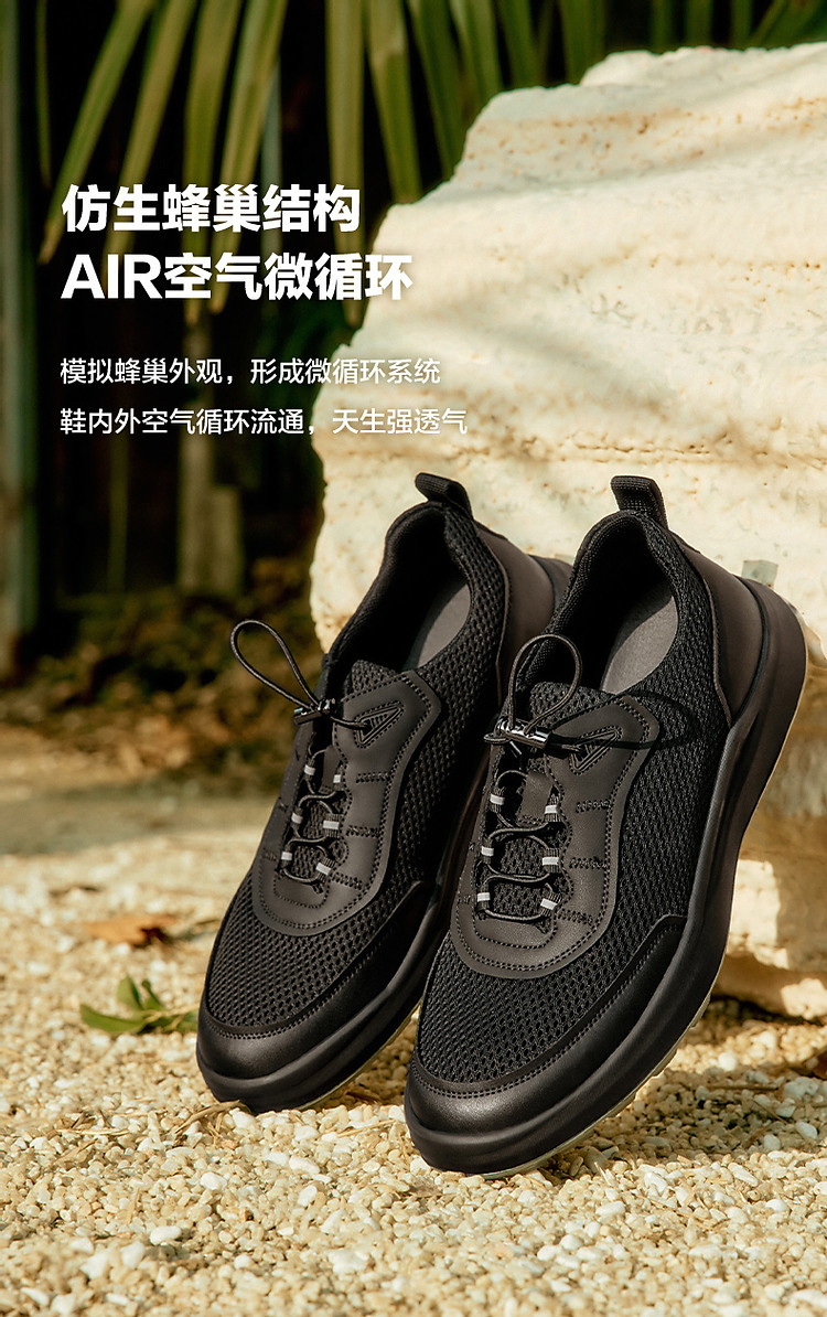 百丽男鞋网面透气休闲健步跑步运动鞋夏季软底爸爸鞋 855066