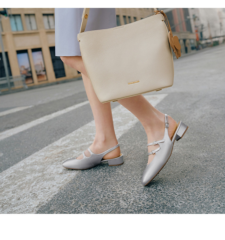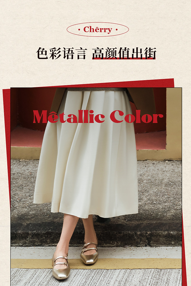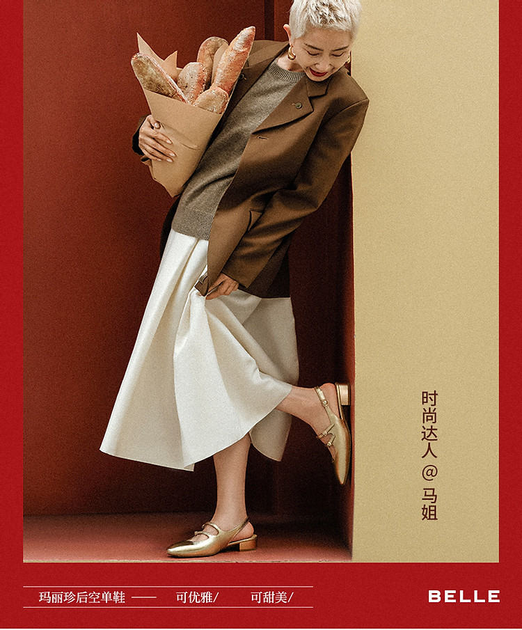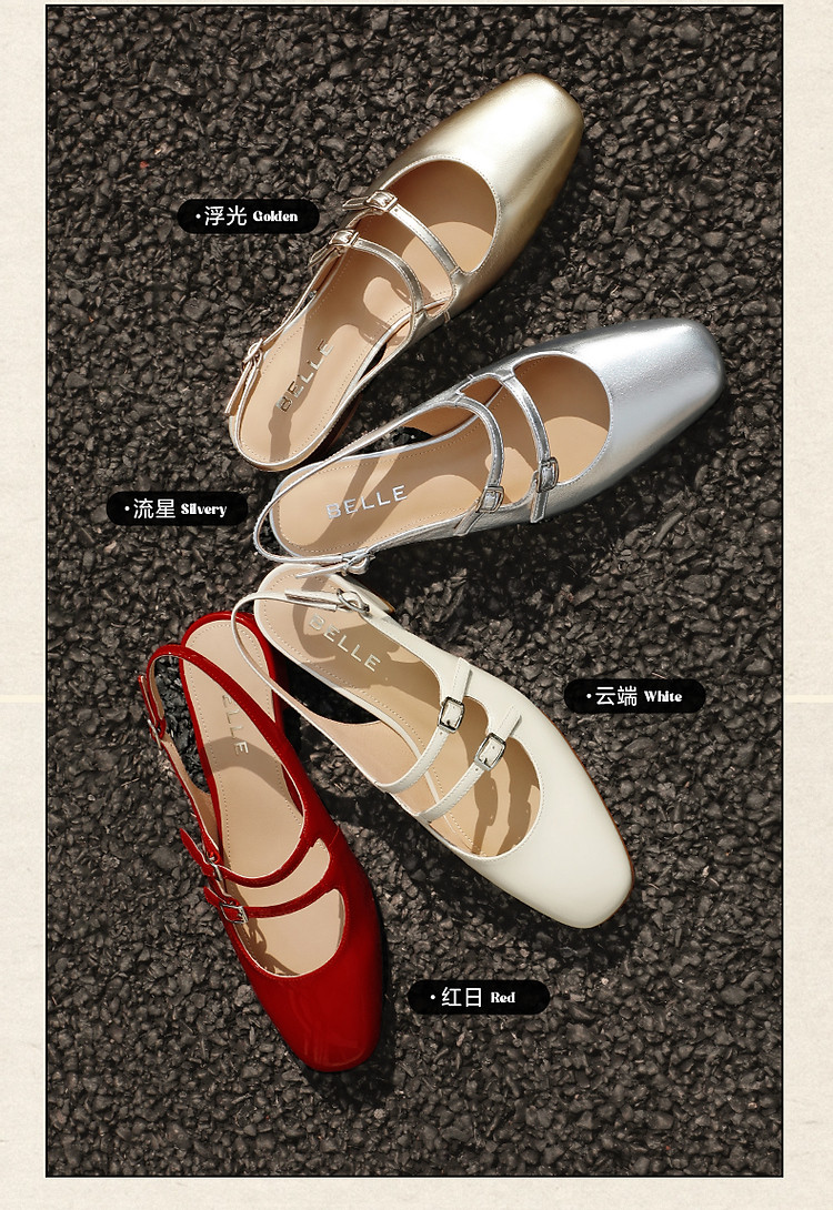 周雨彤明星同款百丽珍妮女孩银色玛丽珍鞋女鞋单鞋 379482