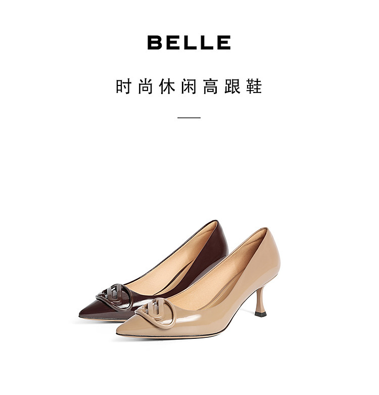 百丽优雅细高跟鞋女鞋子春夏春真皮婚鞋上班穿单鞋 097306