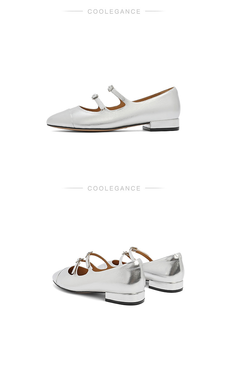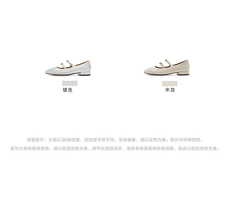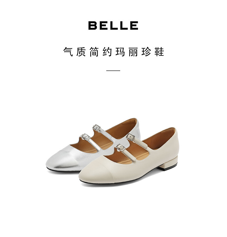商品名称:百丽复古双条带玛丽珍鞋春季款晚晚鞋子银色单鞋 733722