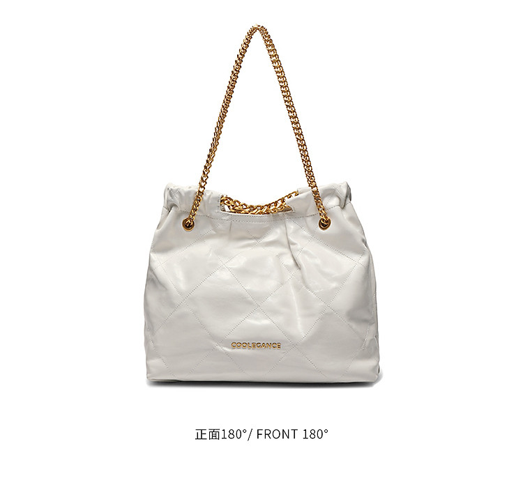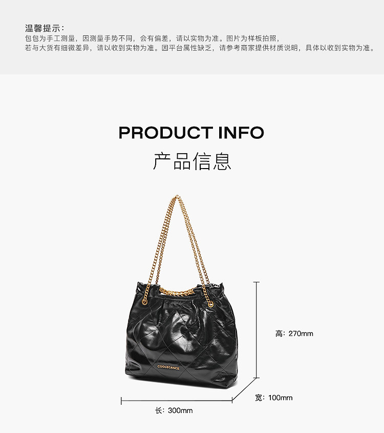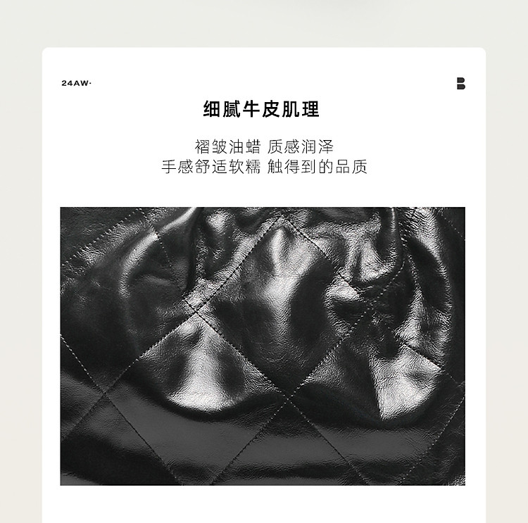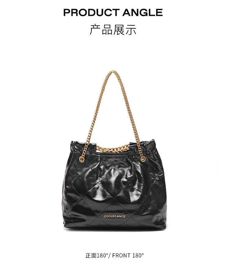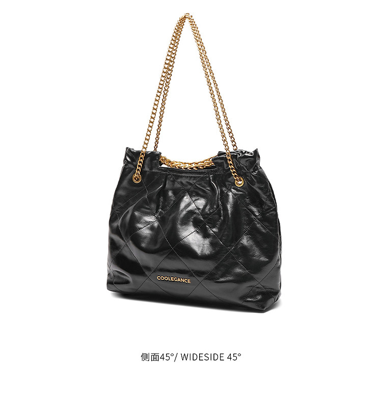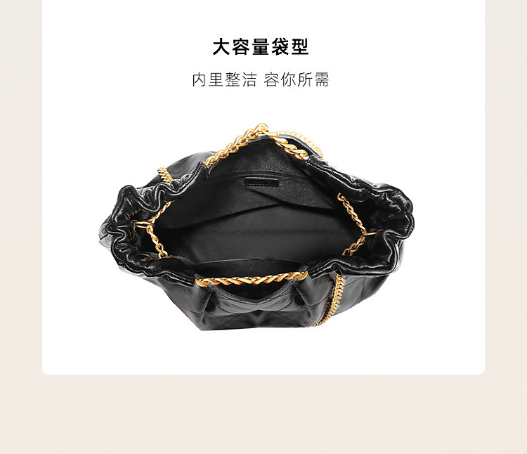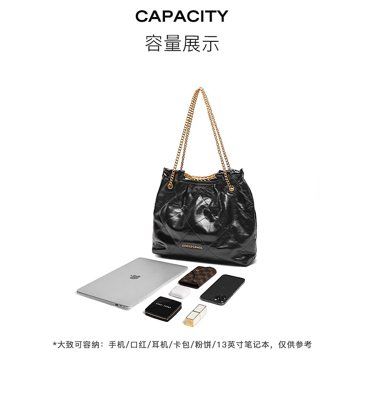 商品名称:百丽春夏牛皮菱格油蜡皮面垃圾袋包轻奢褶面链条手提托特包 922394