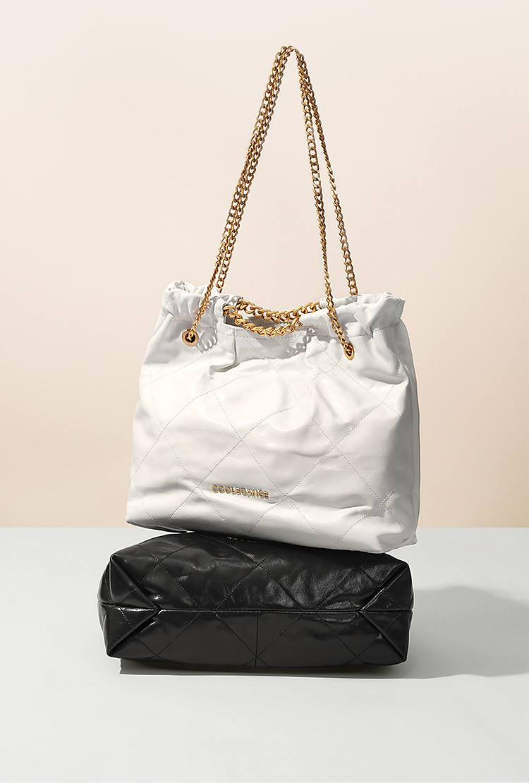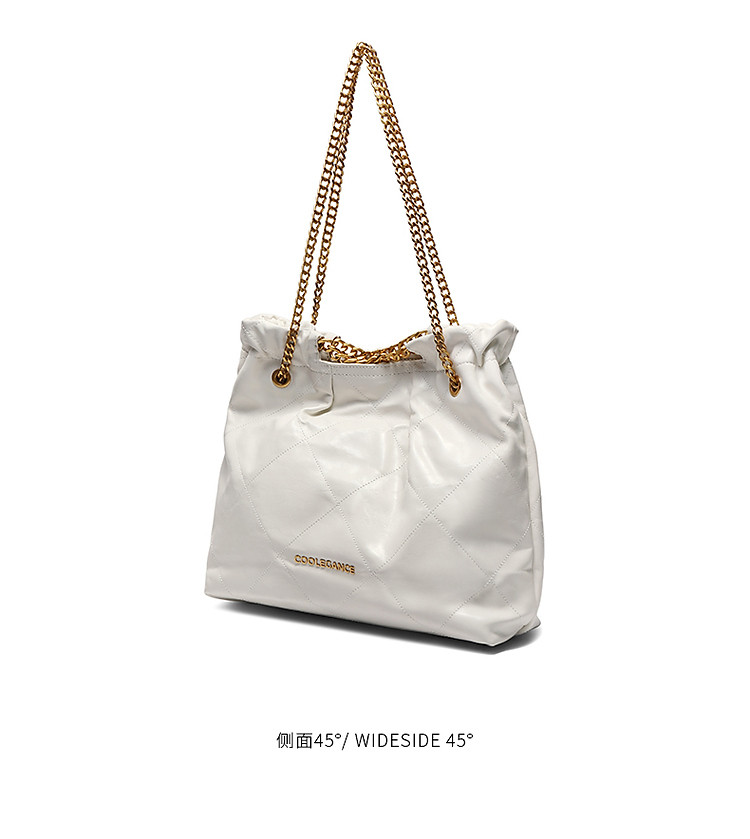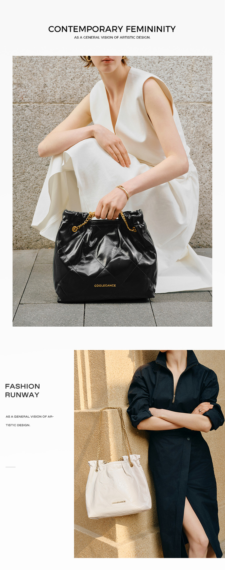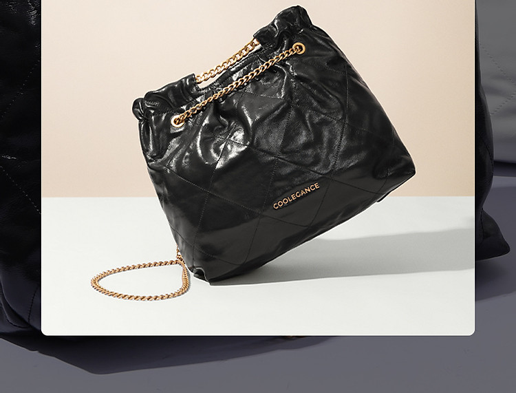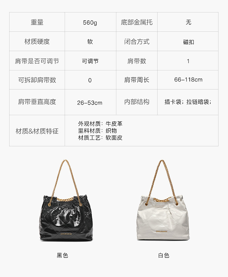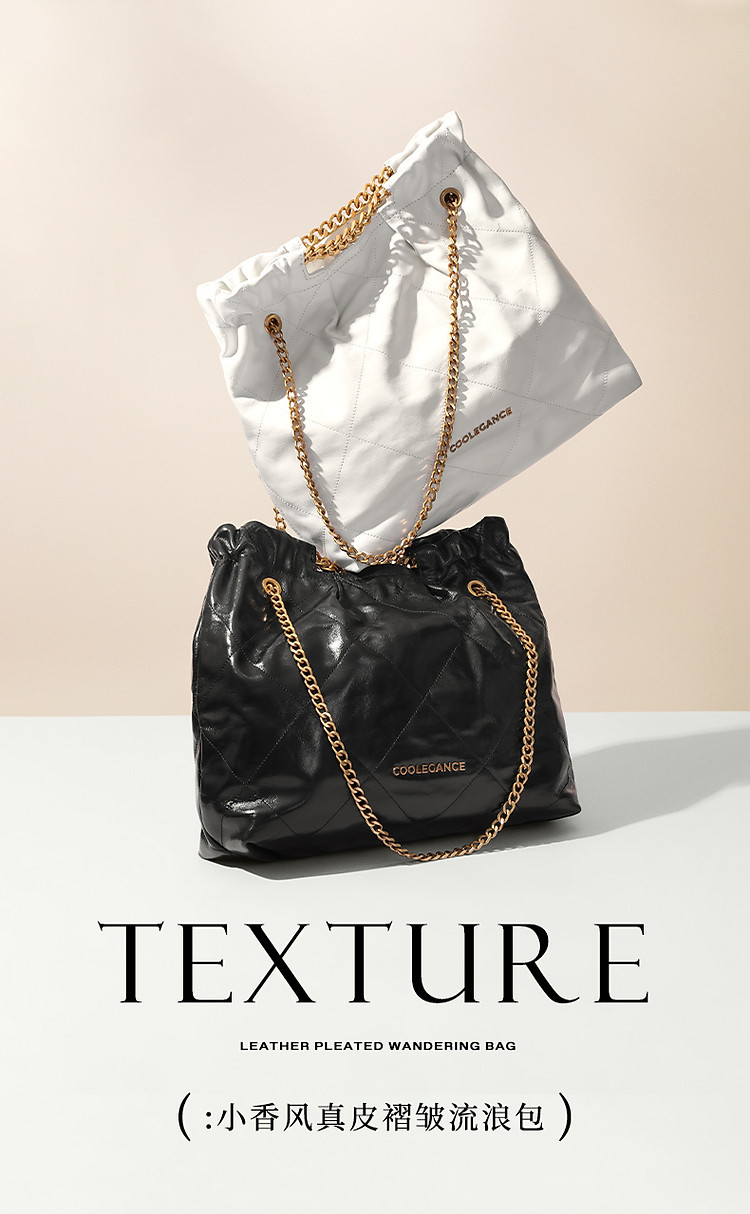 商品名称:百丽春夏牛皮菱格油蜡皮面垃圾袋包轻奢褶面链条手提托特包 922394