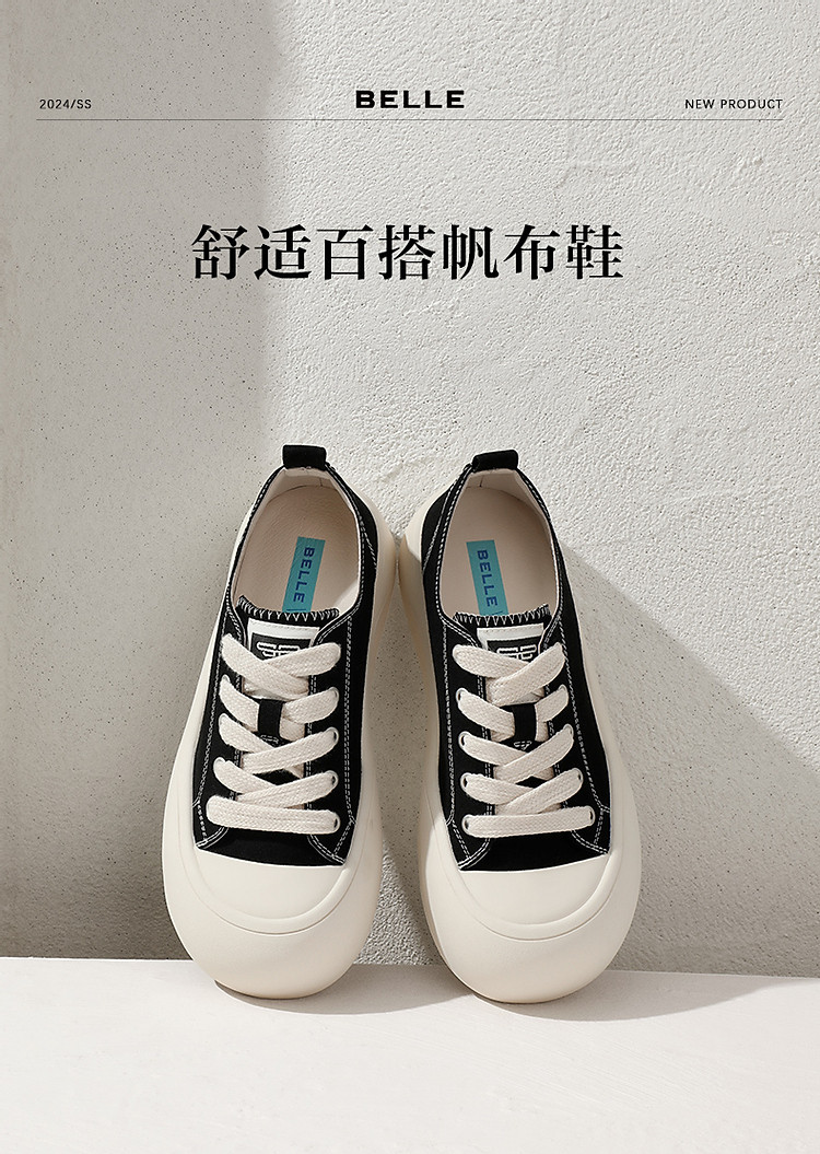 百丽大头丑萌帆布鞋女春夏鞋子厚底运动鞋板鞋 527642