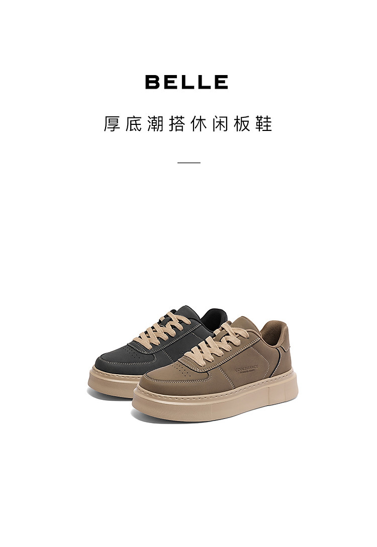 百丽男鞋厚底增高休闲板鞋男春夏季低帮跑步运动鞋子 268570